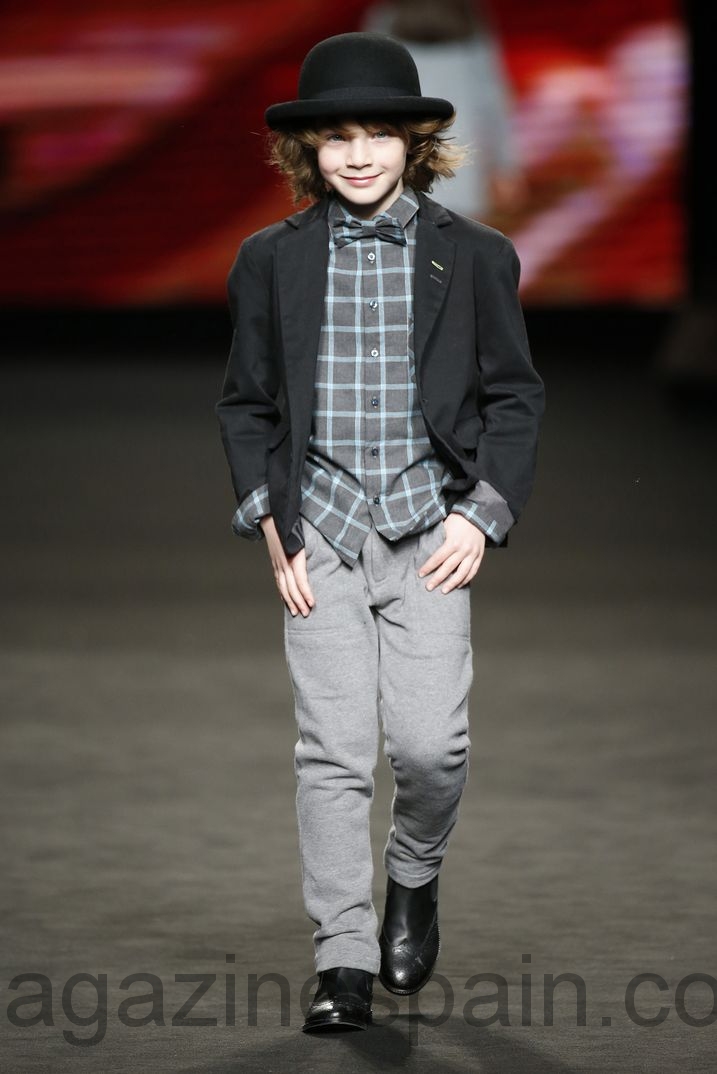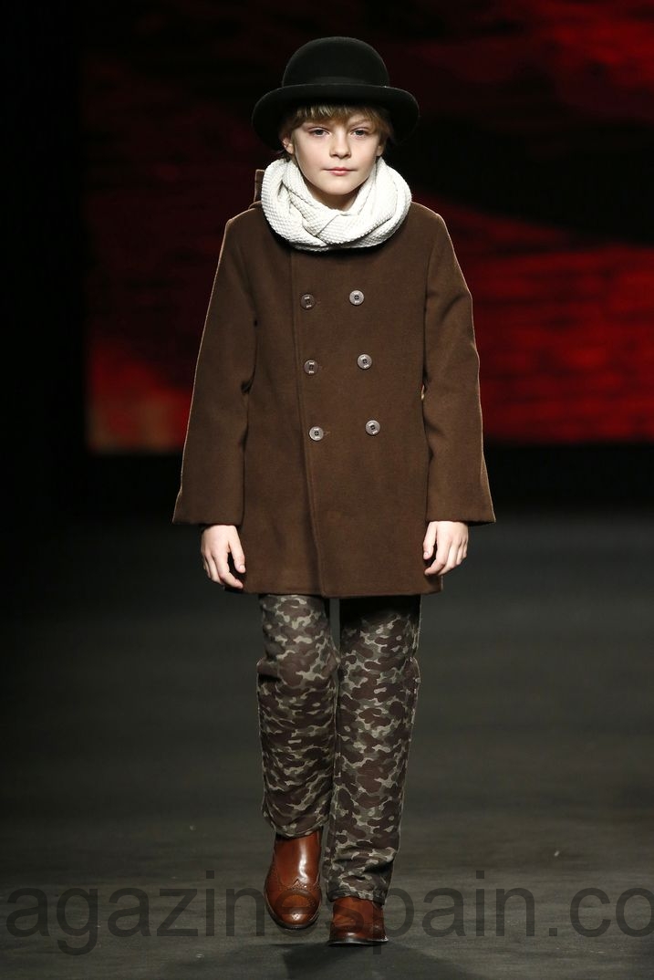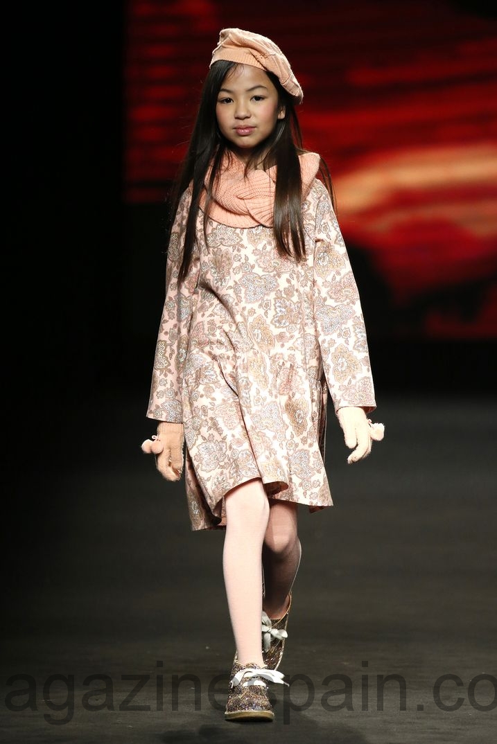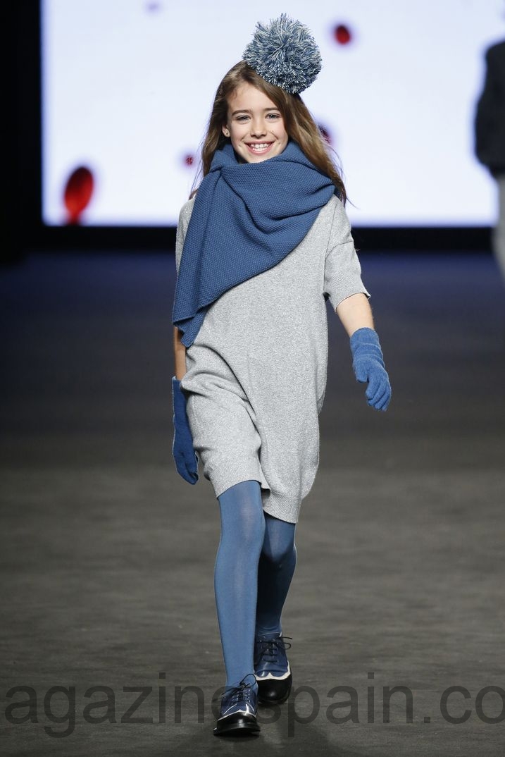 Los tejidos, mayoritariamente de lana, con mezclas de colores y texturados como jacquards para los abrigos, las capas y los grandes fulares. El algodón para los vestidos, con flocados y estampados. Diseño de vestidos y complementos con cremalleras vistas y, un toque de plumas en cuellos y bolsillos. Siguiendo con el neopreno y la piel para nuestros niños. Metálicos en plata y dorado, con combinaciones de tejedura para los complementos.