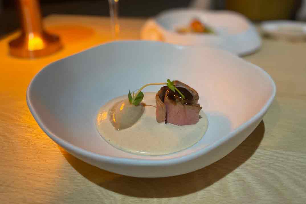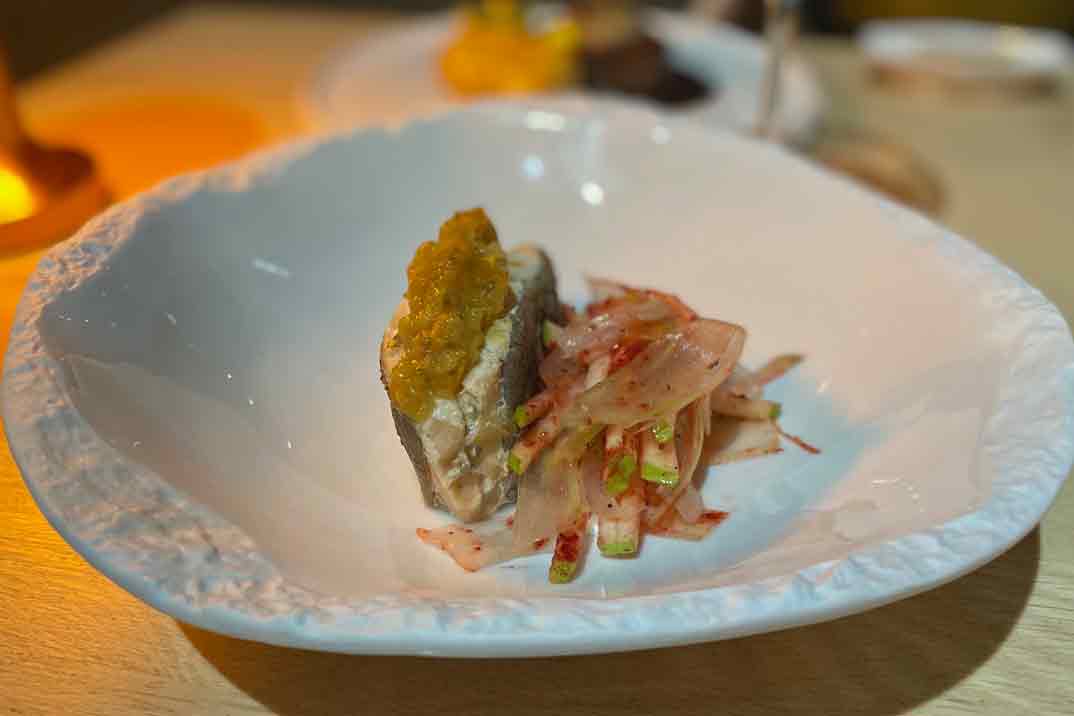 El proyecto de Nomada se completa con Giovanni Mastromarino. Además de estar considerado como uno de los mejores maitres de nuestro país, tras su paso por Quique Dacosta Restaurante (2006-2021), es desde 2022 el jefe de sala. Nos explicó cada plato con cariño y esmero, algo que se agradece a la hora de probar platos tan bien trabajados.