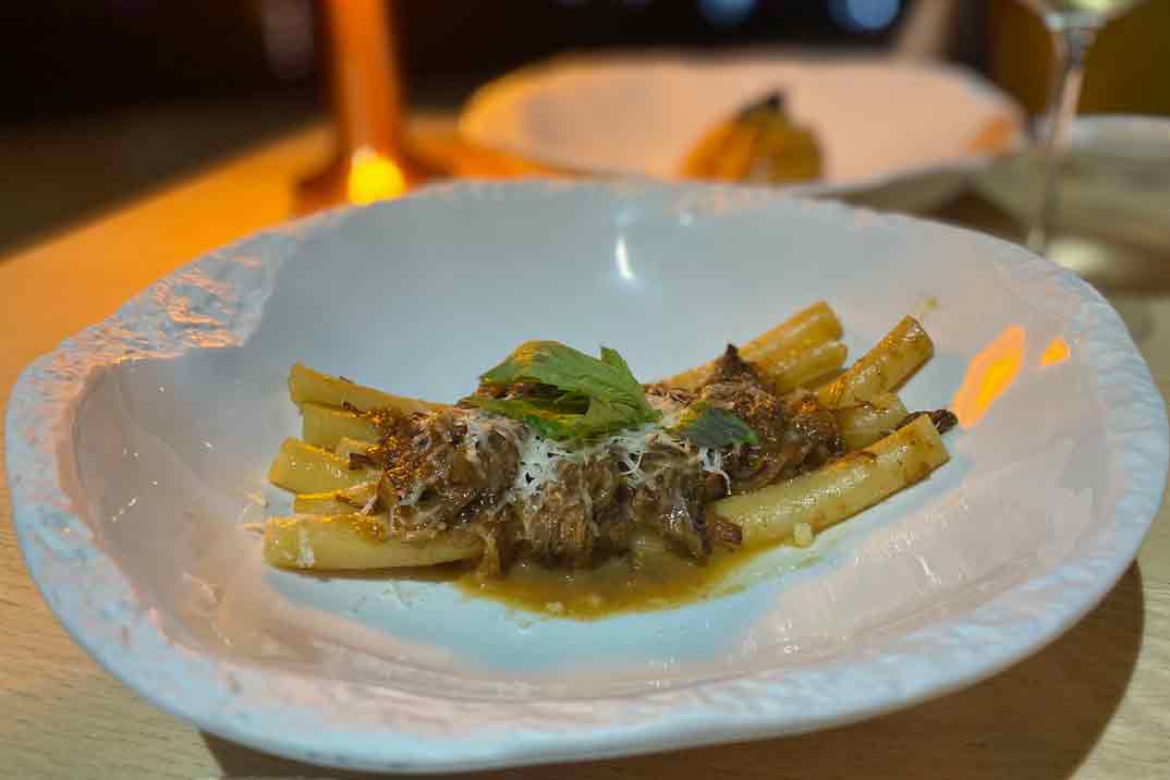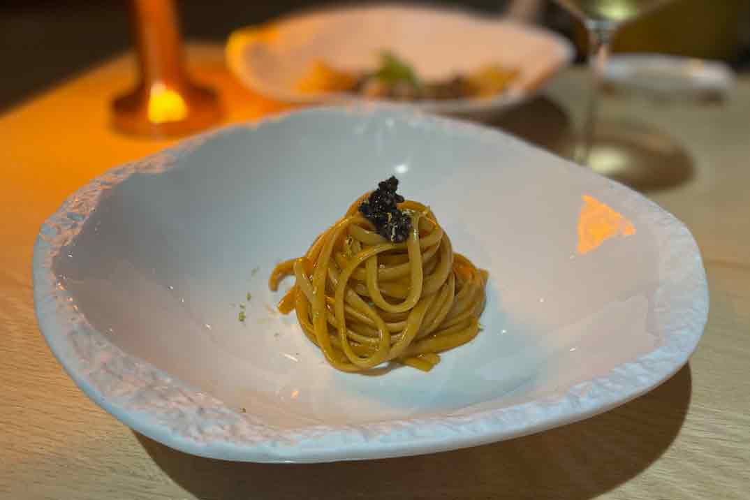 La propuesta gastronómica hace un recorrido por lo mejor de Italia a través del mejor producto mediterráneo. Cuenta además de menú a la carta, con 3 menús degustación (60€,65€ y 90€) que varían cada temporada, dependiendo del entorno y el mercado. Nosotros hicimos un mix de dos de sus menús y entre sus platos más destacables y que te conquistan antes de probarlos están el «Vitello Tonnato«, un gran clásico italiano; los «Ziti alla Genovese» con ragout de ternera y los «Linguine a Banda«, un homenaje a Denia, elaborados con el caldo con el que se hacen los arroces. No le falta el toque de caviar de Río Frío y lima.