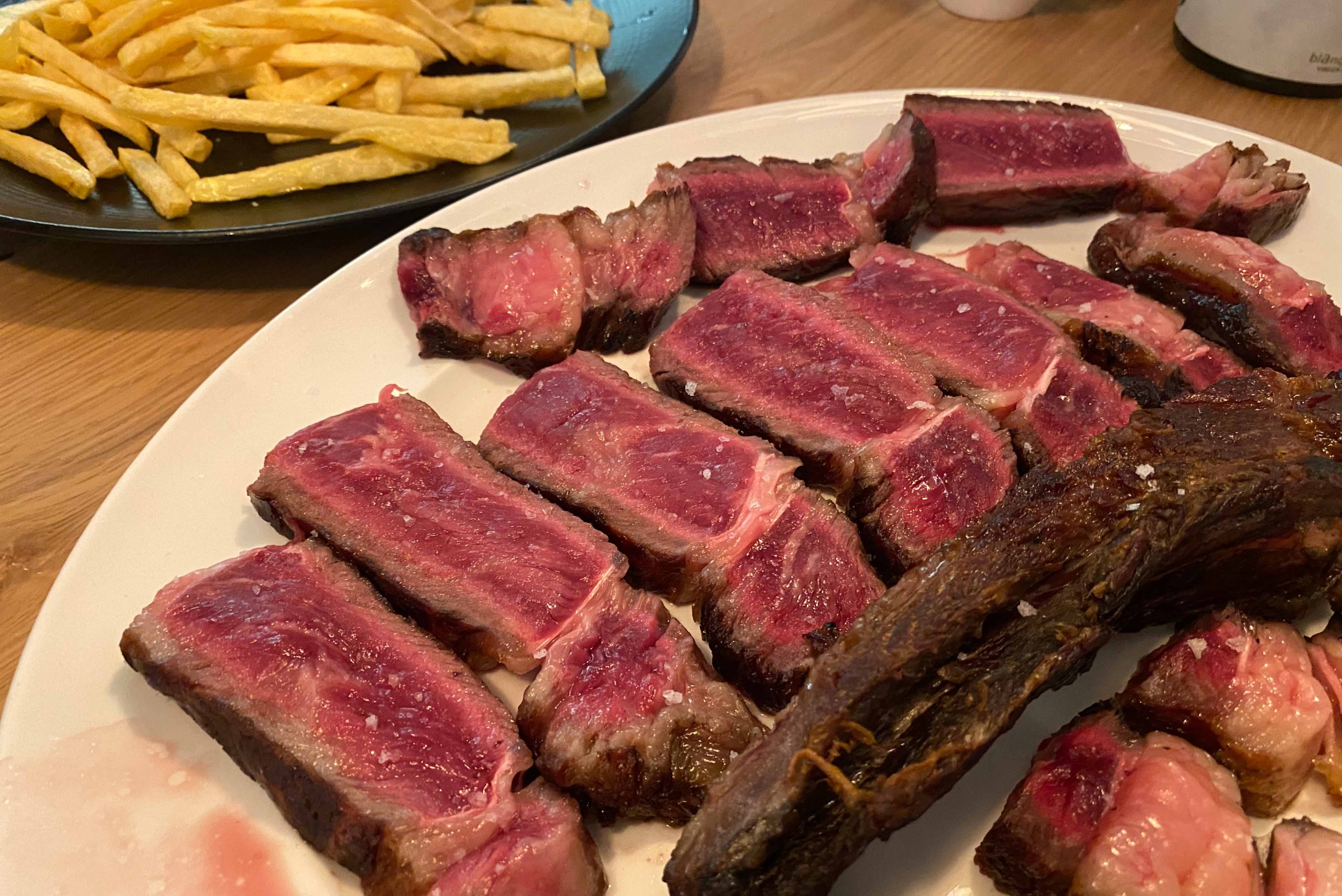 Muy recomendables sus “croquetas sin lácteos de rabo de toro”, las “zamburiñas” a la plancha y para los amantes de la carne, aquí tienen su templo: varios tipos de cortes de vaca vieja hechos a la brasa.