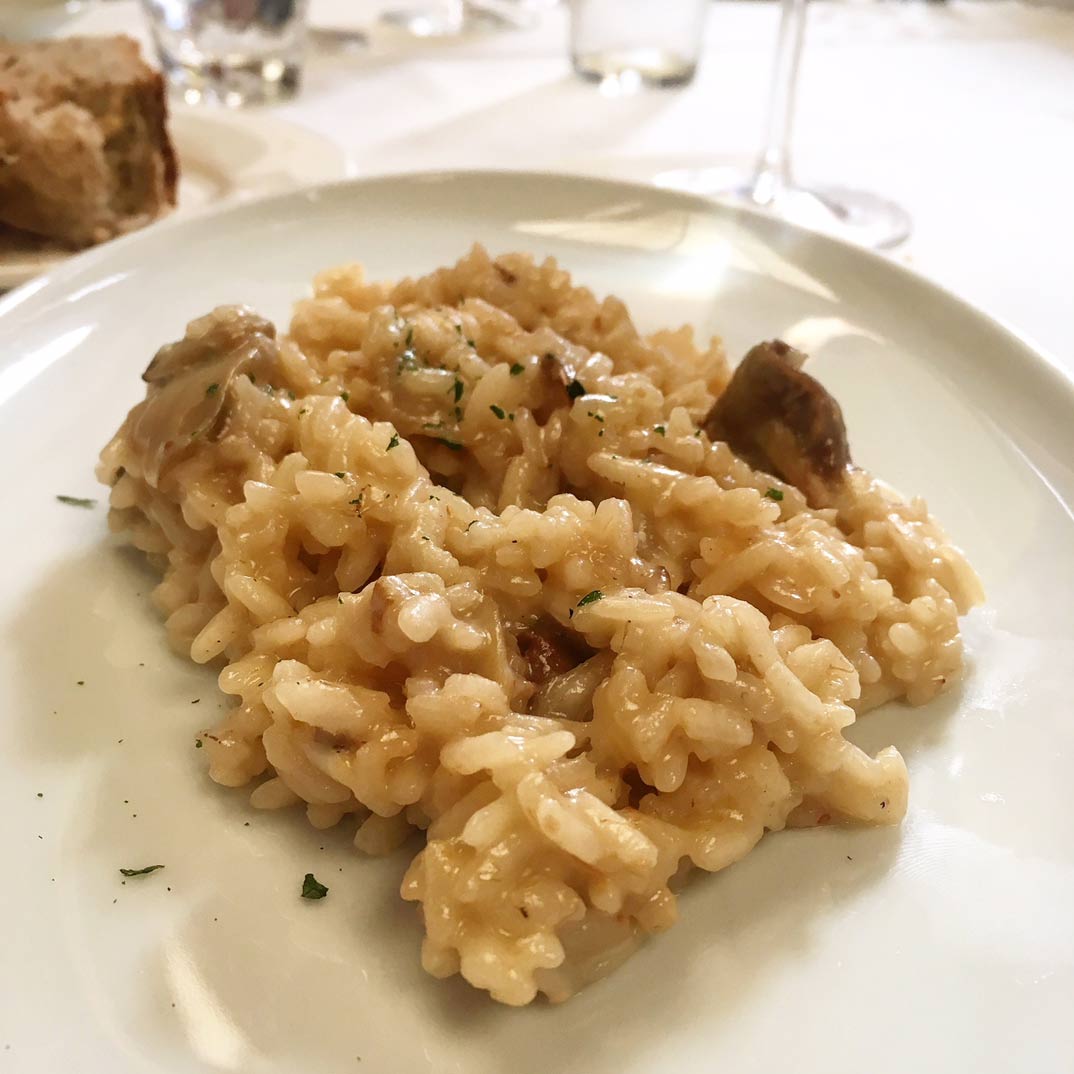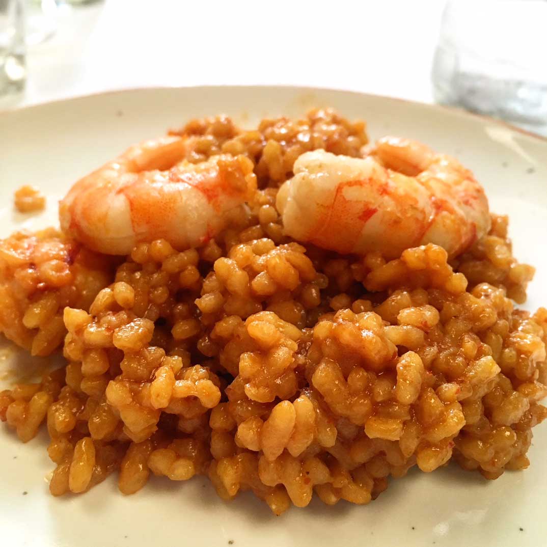 Nosotros probamos un «risotto de setas» y un «arroz bomba con gambones y fumet de la casa«.