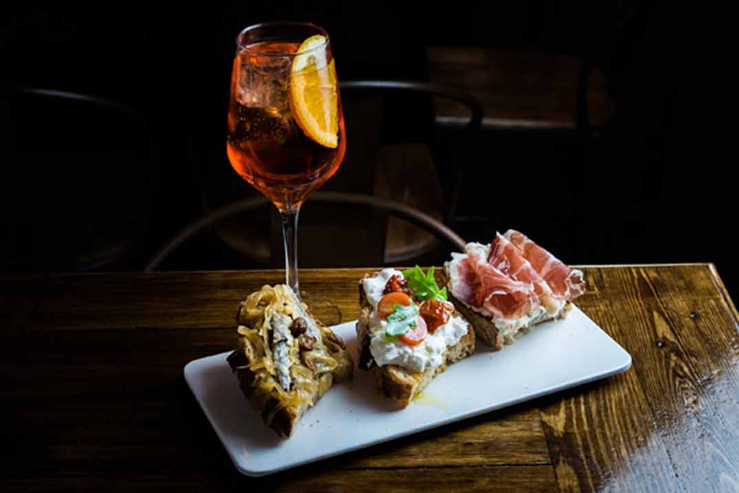 Sorprende también su cuidada selección de vinos italianos -más de 30-, un tercio de ellos disponibles por copas. Y como de clásicos va la cosa, también tienen varios vermuts autóctonos y preparan Aperol Spritz, Negroni y Bellini, los cócteles venecianos por excelencia. Para la gente del barrio y para cualquiera que pasee por el céntrico barrio, cuentan con un menú del día por 12 € en el que además de una tosta de aperitivo, se puede elegir cualquier pinsa o pasta de la carta.