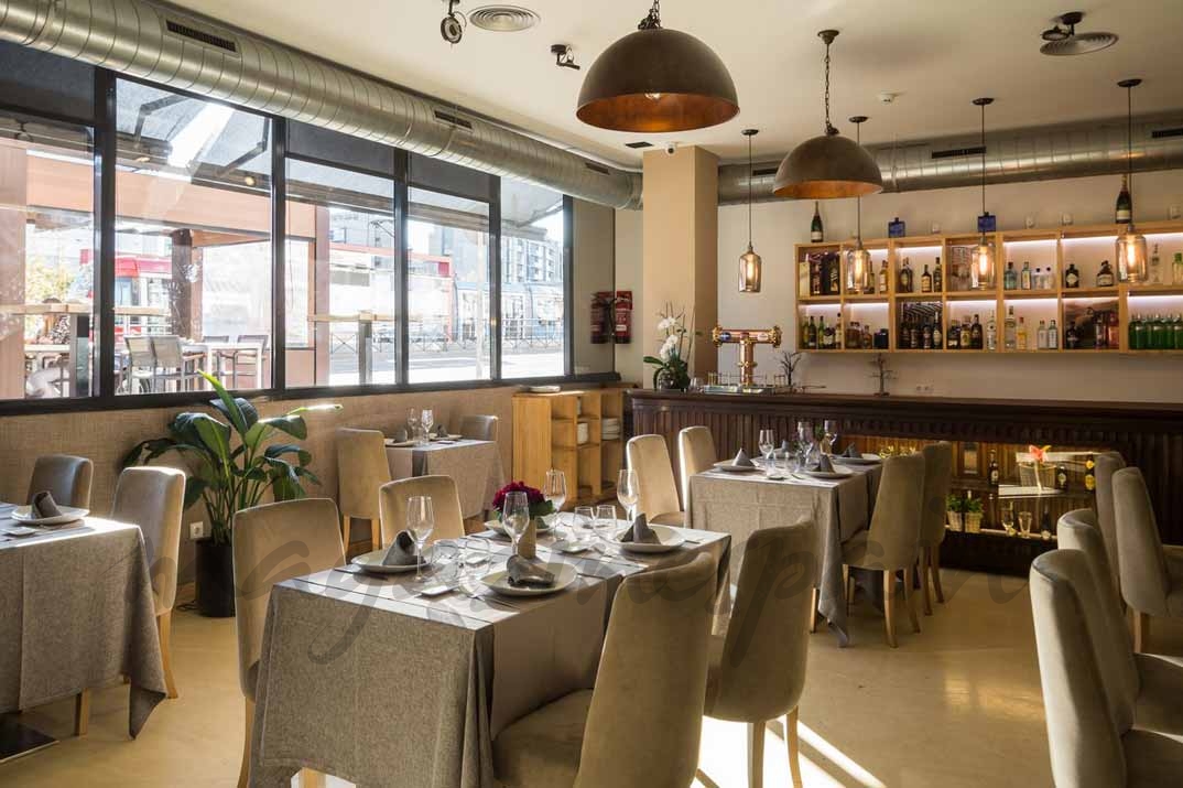 400 metros cuadrados que se presentan en dos zonas diferenciadas, a las que Graciela Higgins, una de las socias y, el estudio de decoración Carrillo, han sabido sacarle personalidad propia… Piezas del artista madrileño Kike keller, cestas punta llenas de verduras frescas y un mostrador de hierro oxidado con una espectacular vinoteca en hierro y cristal. Dos zonas para dos planes diferentes: un comedor donde disfrutar de una velada tranquila y, para un plan más informal, la zona de barra con mesas altas donde podrás degustar sus espectaculares pintxos.