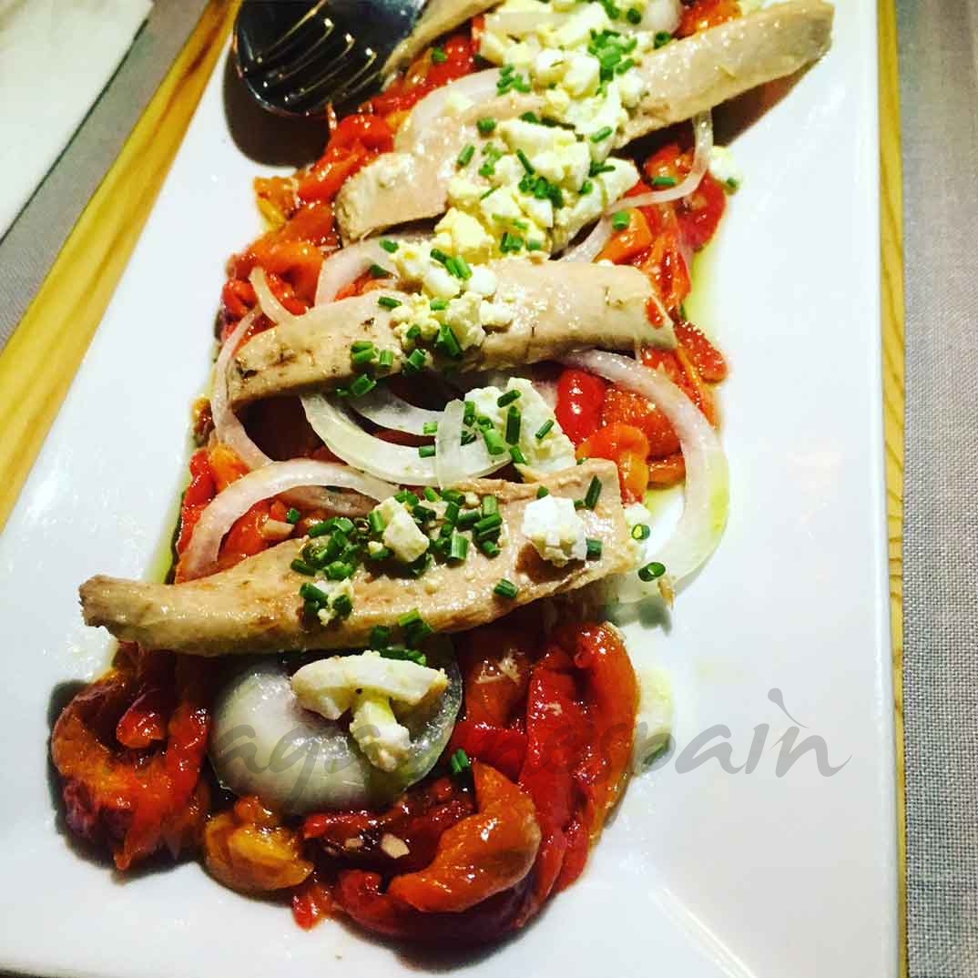 Su carta es amplia y variada, perfecta para compartir… Platos elaborados con mimo y cariño donde prima la calidad en las materias primas pero, sobre todo, respetando la esencia de la cocina vasco-navarra. Empezamos nuestra experiencia culinaria probando las novedades de su carta: “ensalada de pimientos asados con ventresca” y un delicioso “paté de perdiz con mermelada de naranja y pomelo”.