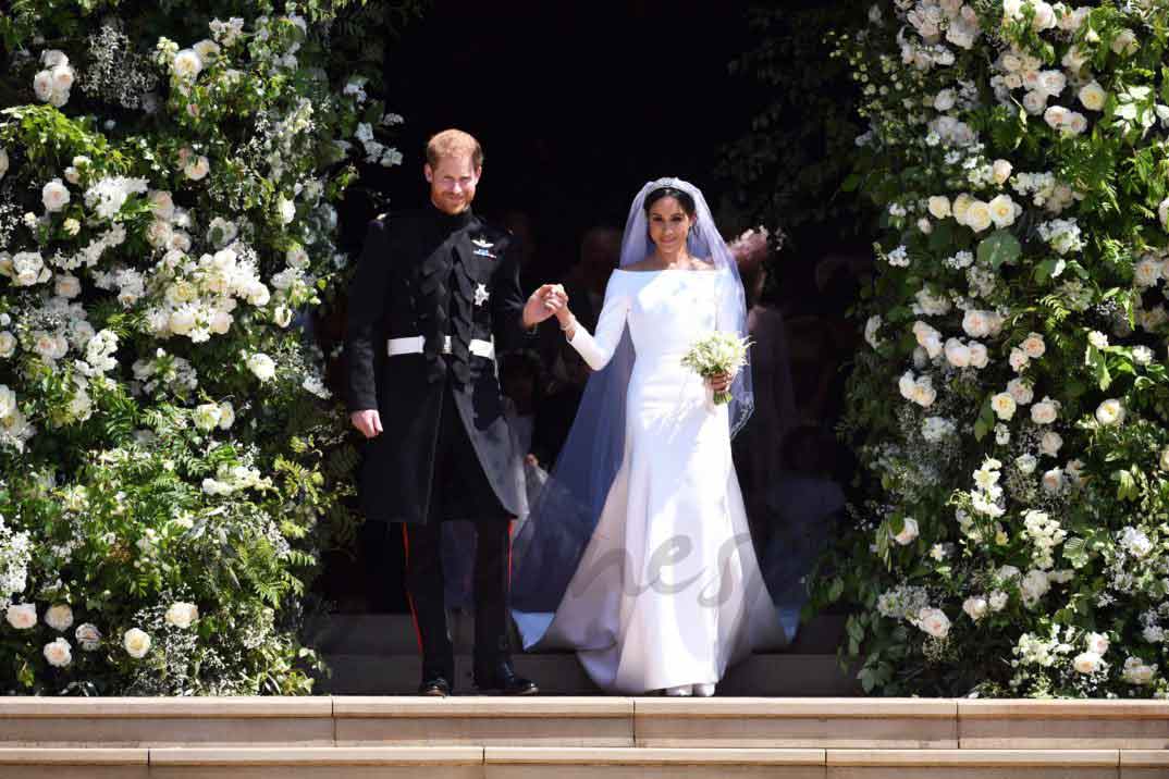 El príncipe Harry y Meghan Markle (29/05/18). Sin duda, el enlace del príncipe Harry y Meghan Markle ha sido la boda del año 2018. El nieto de la reina Isabel II de Inglaterra contraía matrimonio con la ex actriz de la serie «Suits» en Windsor. Con un impresionante vestido diseñado por la británica Clare Waight Keller para Givenchy, Meghan Markle entraba en la capilla de San Jorge – su padre no pudo acompañarla-. Y a las puertas de la capilla le esperaba el príncipe Carlos para llevarla al altar.