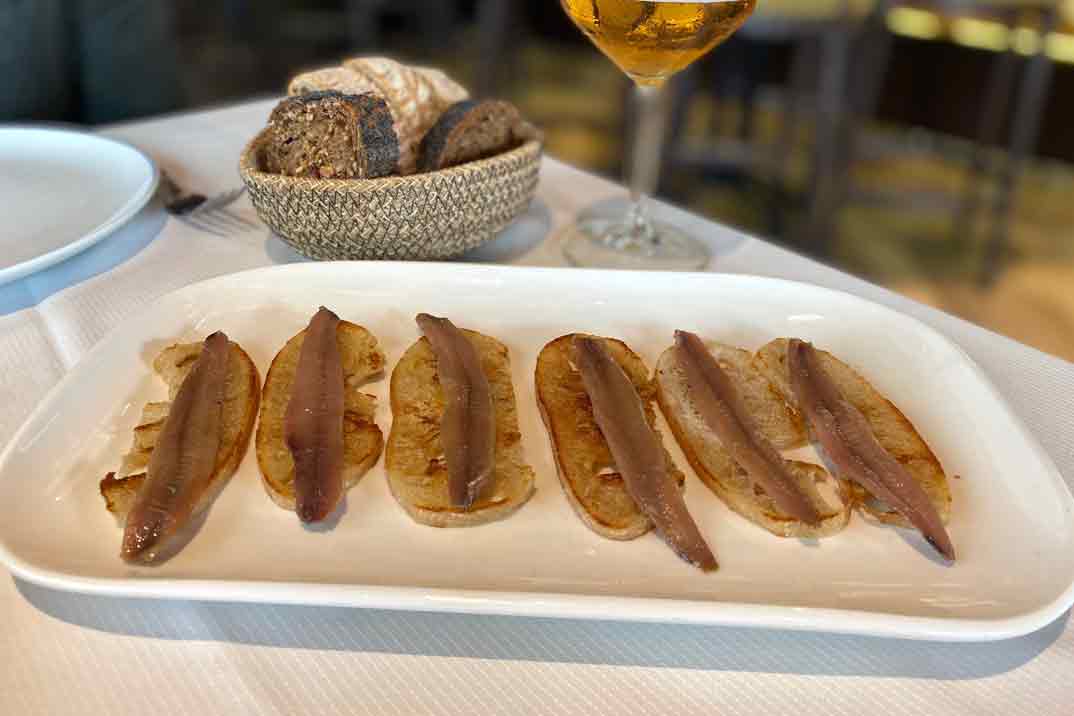 Lo mejor es comenzar con alguna de sus conservas como «los mejillones en escabeche» o de sus salazones las «Anchoas de Santoña, Pan y Mantequilla«. Riquísima y perfecta para compartir es la «tortilla vaga de piparras fritas y chistorra«.