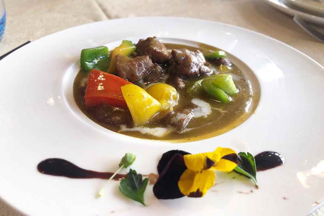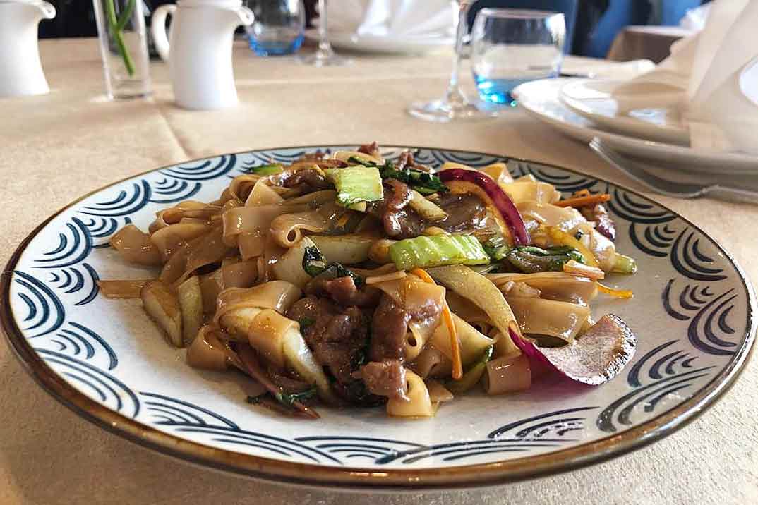 Los terceros platos fueron: «Solomillo de ternera salteado al curry«, «Pollo crujiente estilo Thai» y «Langostinos salteados con Ginkgo y X.O» acompañados de «Fideos frescos salteados con gambas y verduras», «Tallarines con carne de pato y verduras» y «Arroz frito con solomillo de ternera y pimienta negra«.