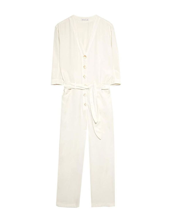 Se trata de un mono, una de las prendas más cómodas de nuestro vestidor e imprescindible en todos los armarios. En concreto se trata de un mono blanco roto, con botones y cinturón de Stradivarius, que tiene un precio de 39,99 euros.