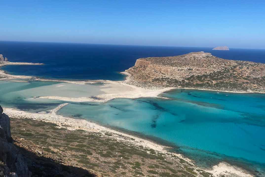 Playa de Balos: Empezamos nuestra aventura de playas con Balos, una de las más famosas de Creta. Llegamos en coche hasta el punto de inicio del sendero y después caminamos durante unos 20 minutos para llegar a la laguna. Las aguas turquesas y la arena blanca hacen de este lugar un paraíso, y sin duda, es uno de los mejores lugares para nadar.