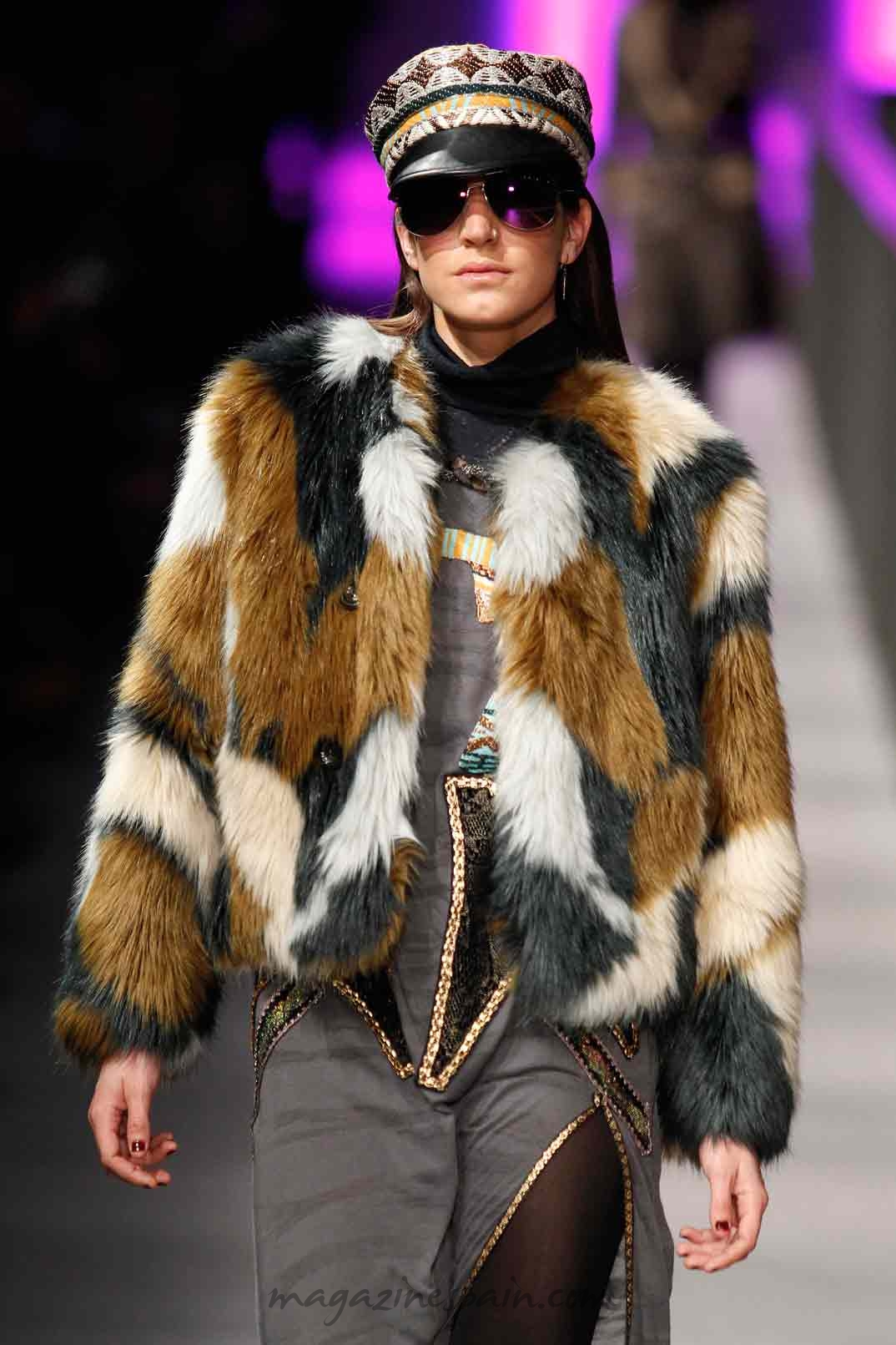 Custo ha usado la paleta de colores clásicos de invierno y los ha mezclado con otros más vivos, el negro, gris, beige… se han encontrado con el lila y otras tonalidades con más fuerza.