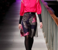 La superposición de capas cobra mucha fuerza, con una base negra sobre la que se plasman grafismos ricos en color. Faldas y abrigos mitad de un estampado mitad de otro, largo sobre largo, mezcla de materiales en la misma prenda, un toque militar… Realmente la dualidad de los tejidos es una de las claves de la colección.