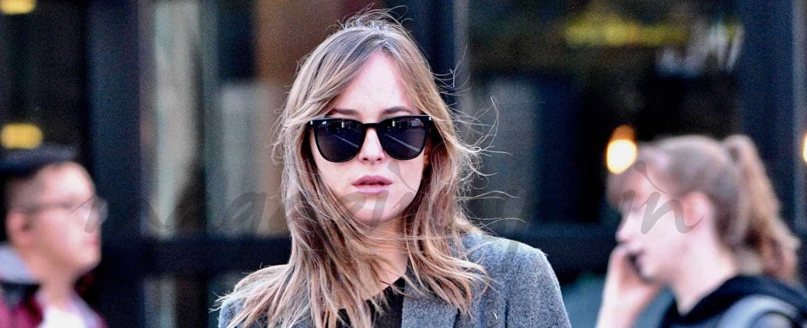 Dakota Johnson, protagonista de «Cincuenta Sombras de Grey» no da una lección de street style por las calles de Nueva York.