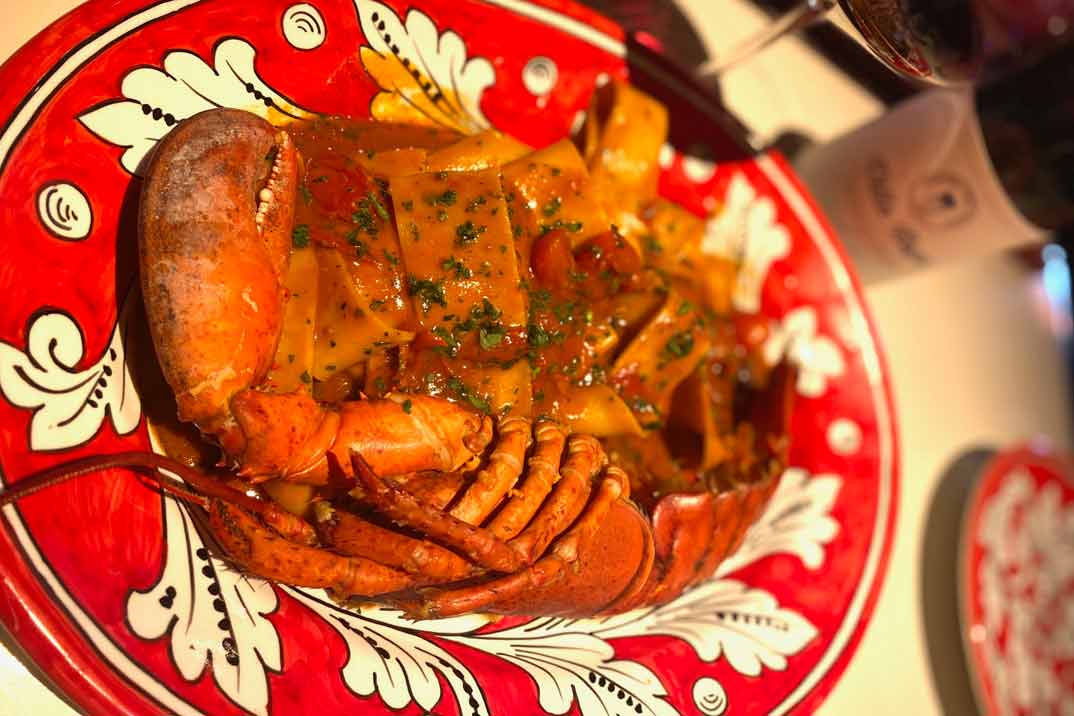 Como platos principales os recomiendo los «Pappardelle al bogavante«, (Pappardelle al huevo hechas a mano, medio bogavante, bisque de bogavante y tomates frescos) o los «Gnocchi alla Sorrentina«, un plato típico de Nápoles, que la mamma del chef Luigi, sabe cocinar como nadie y que quiere que lo disfrutéis en un día tan especial. Gnocco hecho en casa con salsa de tomate, provola y Parmigiano Reggiano, servido en una cesta de pizza.