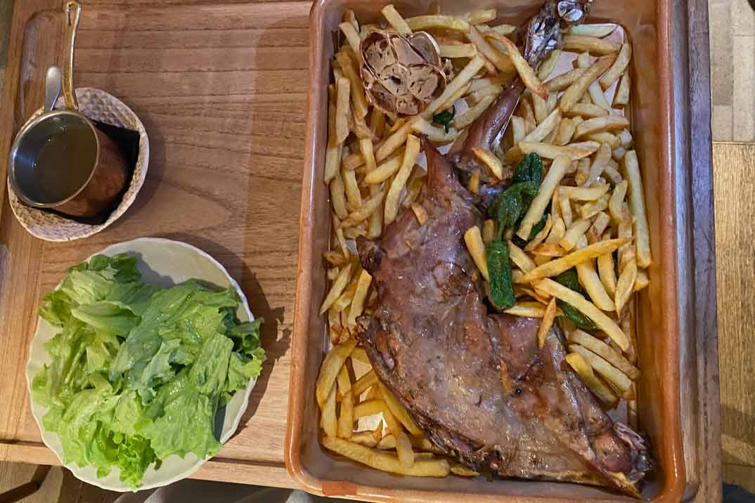 Como plato principal os recomiendo sin duda alguna, el «Chivo de lechal malagueño» asado con patatas fritas y pimiento cornicabra, realmente delicioso.