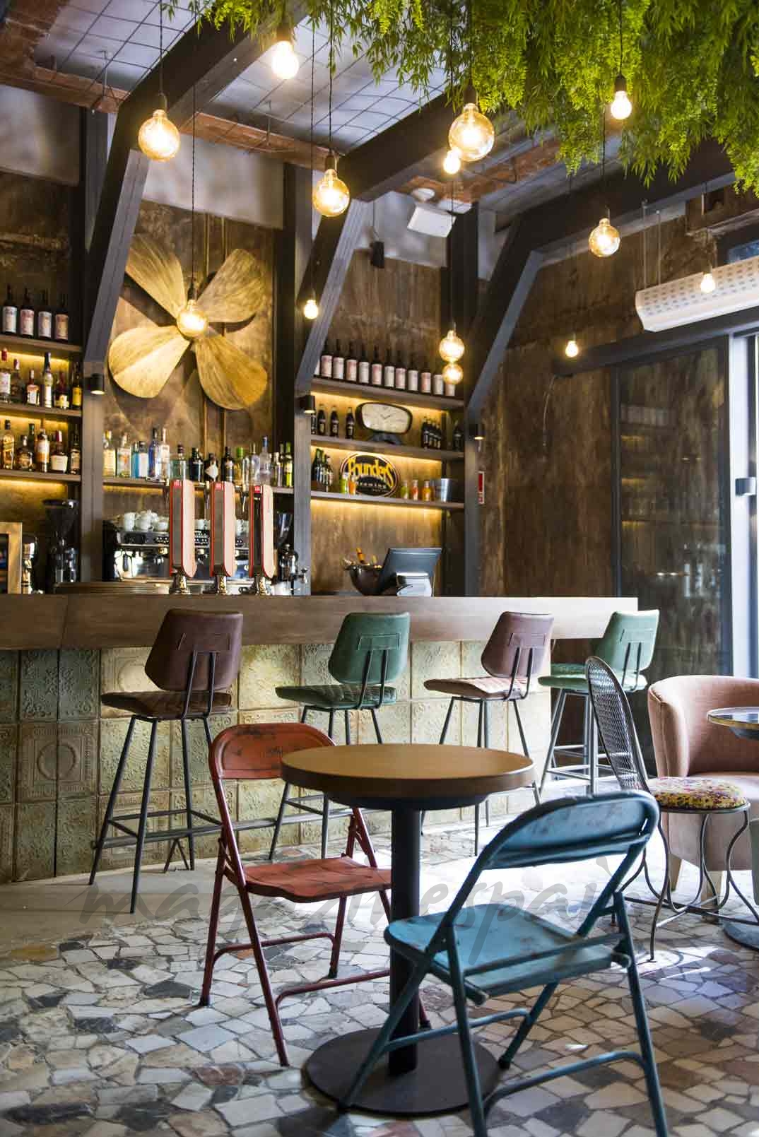 Con una decoración de estilo industrial y con tres espacios diferenciados (zona de barra-terraza, salón comedor y planta baja con reservado para celebraciones y eventos), busca ser un punto de encuentro para los habituales y vecinos del barrio tanto para el día como para la noche.