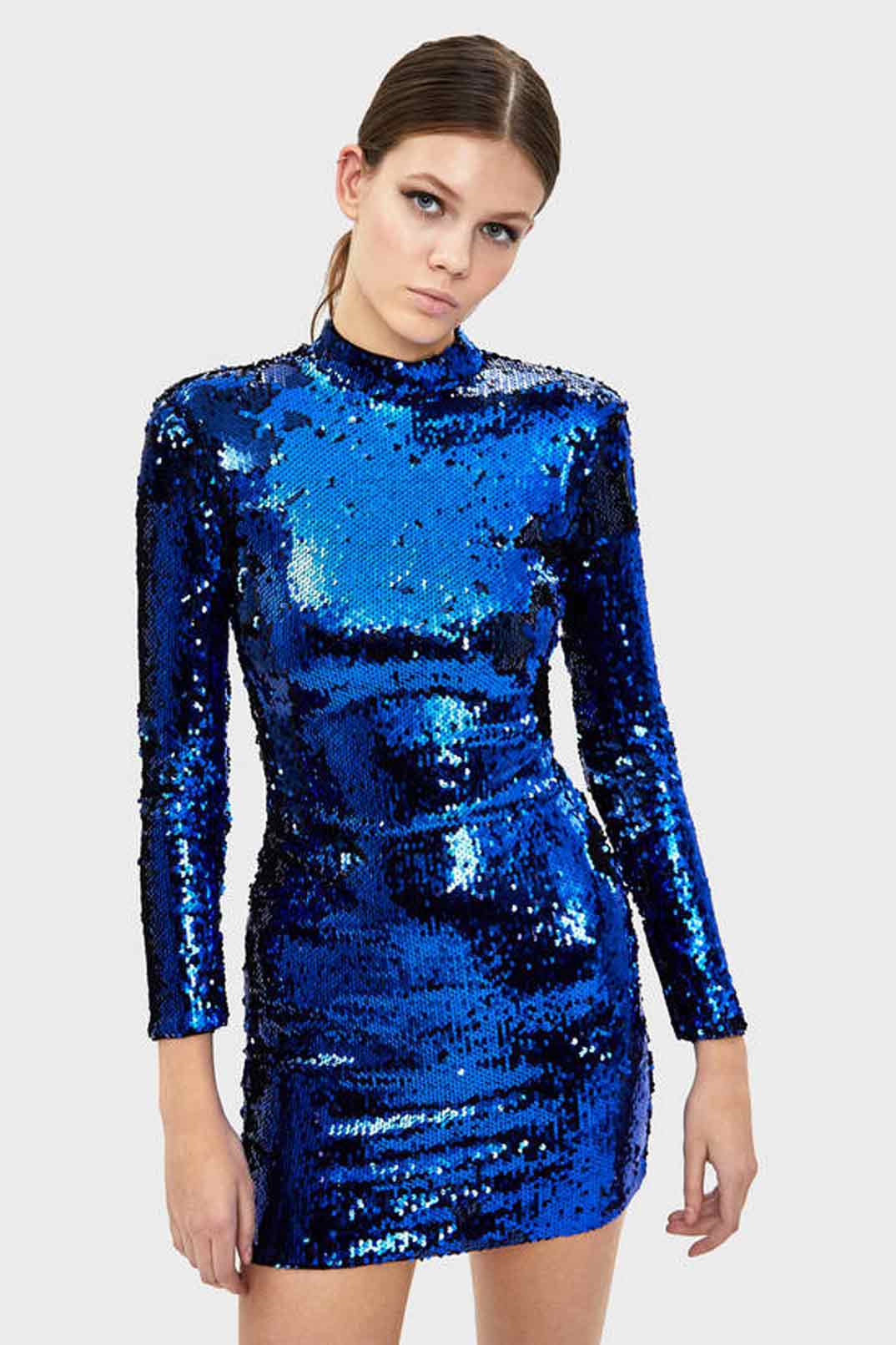 El estilo blazer ha llegado para quedarse y también se ha adueñado de los vestidos de fiesta. Nuestro preferido es este vestido mini de lentejuelas de Zara, con solapa y un cierre frontal cruzado con un elegante lazo satinado.