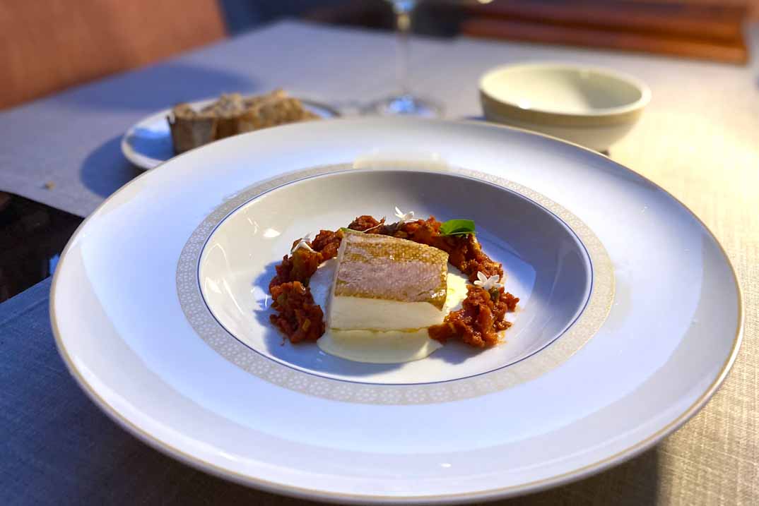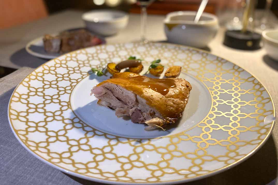 Como platos principales, el bacalao confitado con fritaílla de tomate encominada, encurtidos y su pil-pil, y el cochinillo crujiente acompañado de patatas, demostraron la maestría en la reinterpretación de clásicos con técnicas contemporáneas.