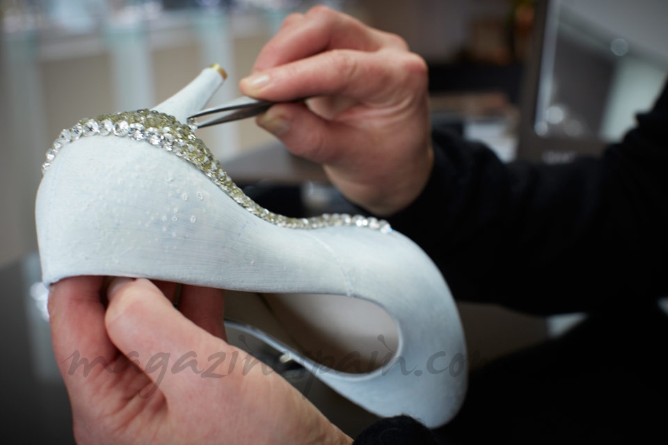 Para su creación, Hutchings ha colocado cuidadosamente a mano más de medio millón de dólares en diamantes blancos en el tacón del exclusivo zapato de corte clásico para crear una obra de arte única.