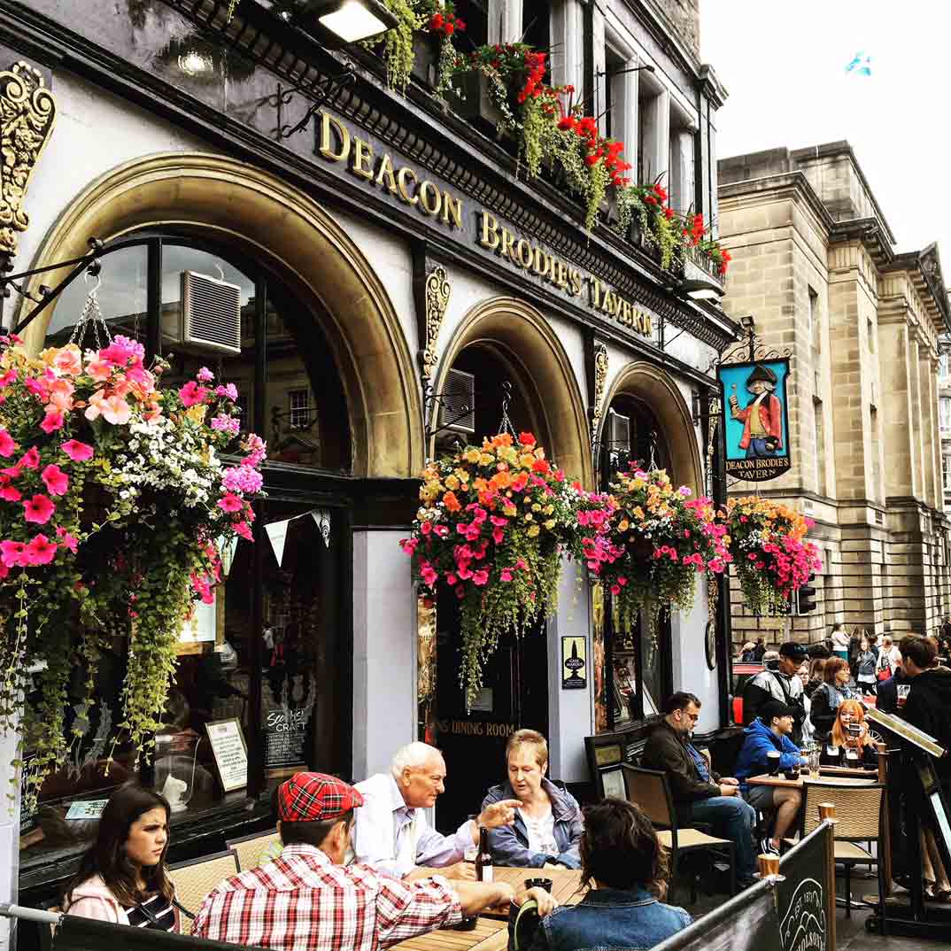 Con el tiempo tan espectacular que hace, cualquier momento es bueno para disfruta de una pinta con “fish & chips” en una de las miles de terrazas de Royal Mile. Todas tienen un encanto especial.