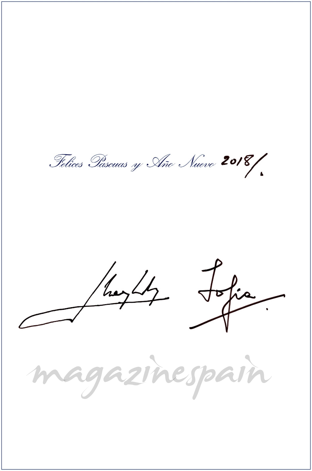 En el reverso de la postal navideña se puede leer el mensaje: «Feliz Navidad y Próspero Año Nuevo 2018«, firmado por don Felipe, doña Letizia y sus hijas.