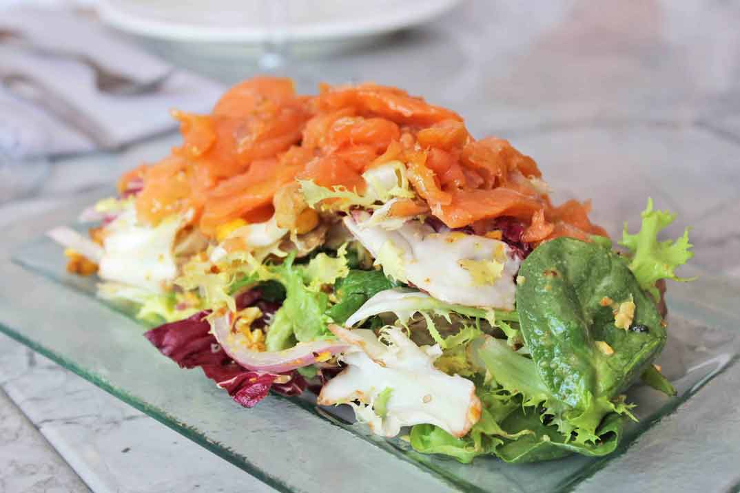 Gracias a David de David por Madrid, fuimos a conocer su nueva carta. Comenzamos nuestra experiencia gastronómica con una «Ensalada de burrata» con cherries dulces, piñones y kumato y una «Ensalada de salmón» ahumado con kikos, cebolla morada y vinagreta de miel y mostaza.
