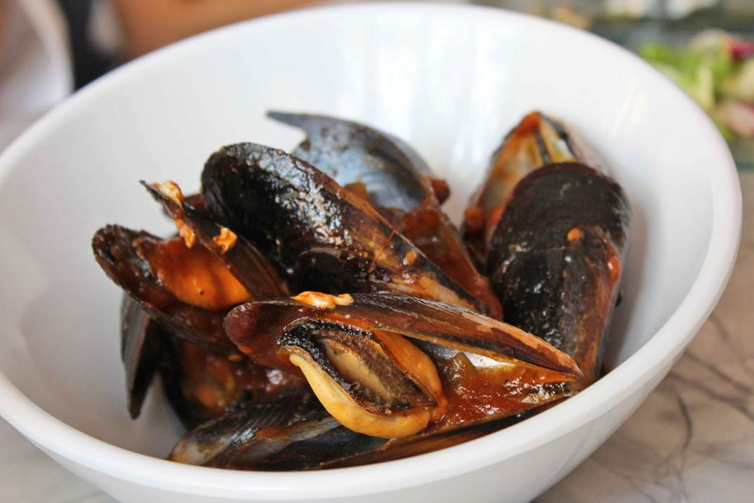 Continuamos con unas «Croquettes maison» con verdadero sabor a jamón y, unos «Mejillones estilo Gigi» con salsa a la rabiata de Sambuca… ¡Espectaculares!.