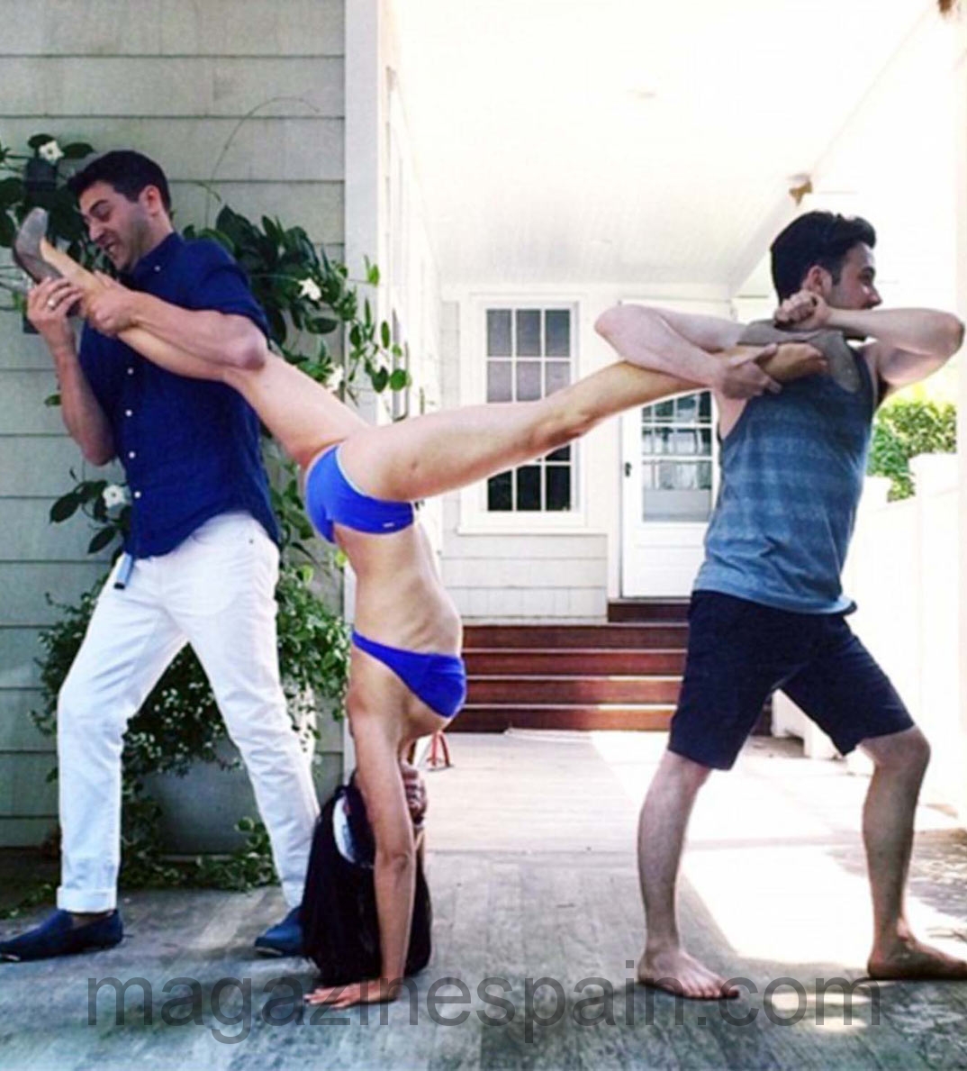 Hilaria acompaña al actor a todos los lugares que le obliga su trabajo y no desperdicia un momento para practicar, su gran pasión, el yoga y subir las fotos a Instagram.