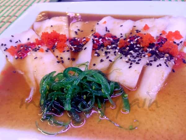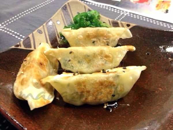 Empezamos con la “ensalada de algas y wakame”, unas “gyozas” y “tiradito de pez mantequilla con salsa de maracuyá” suave, fresco y bien ejecutado.