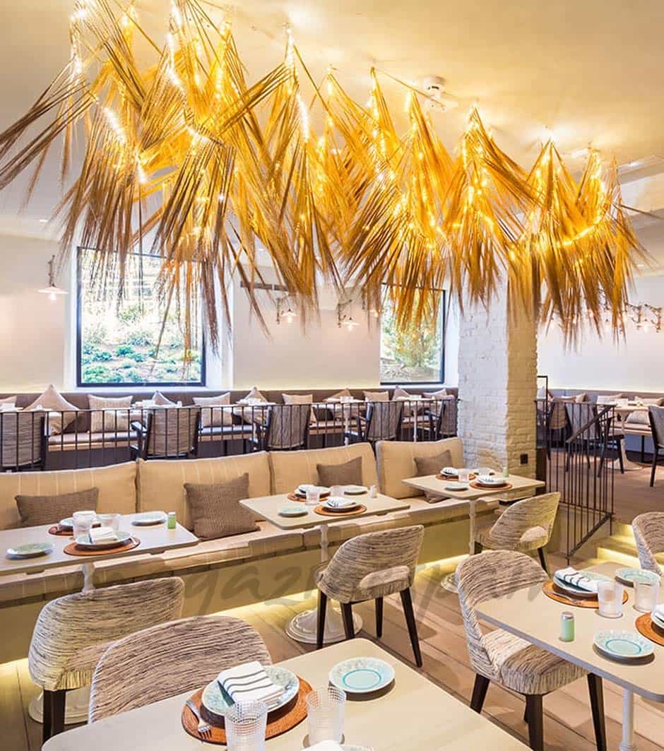 Todo el mobiliario es de ratán, lamas de madera y colores muy neutros para crear un lugar cálido donde disfrutar a cualquier hora del día.