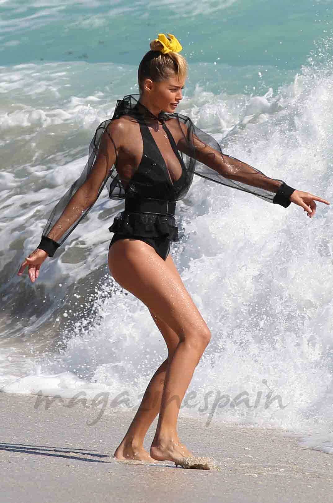 Aunque colgó sus alas , la modelo Doutzen Kroes sigue siendo un ángel. La top model holandesa de 30 años, que abandonó hace escasamente un mes la firma Victoria’s Secret , ha disfrutado de una jornada de playa.