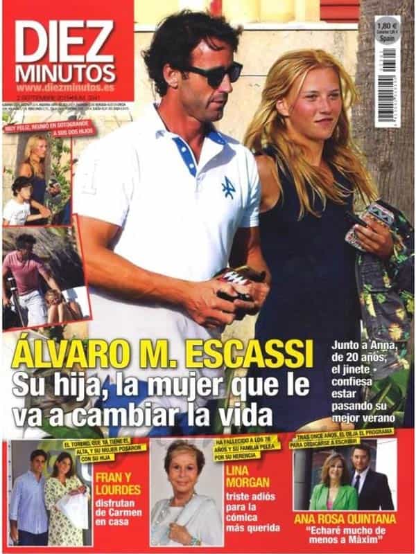 En la revista «Diez Minutos», Álvaro Muñoz Escassi con Anna, su hija secreta hasta hace unos días, la mujer que le va a cambiar la vida. Junto a la joven, de 20 años, el jinete confiesa estar pasando su mejor verano. Muy feliz, reunió en Sotogrande, a sus dos hijos.