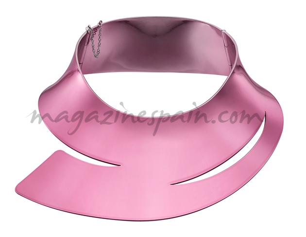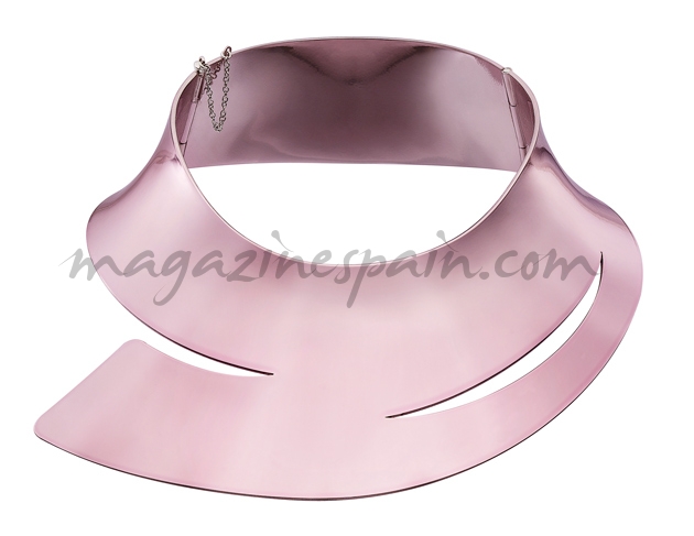La versión metálica se distribuye exclusivamente en tiendas específicas, dependiendo los colores de las gargantillas según la zona geográfica. Diseñada por Camile Miceli, directora creativa de accesorios, esta pieza para el cuello es una mezcla de inspiraciones y eras, que juntas reúnen en un solo objeto artesanía tradicional y diseño vanguardista.