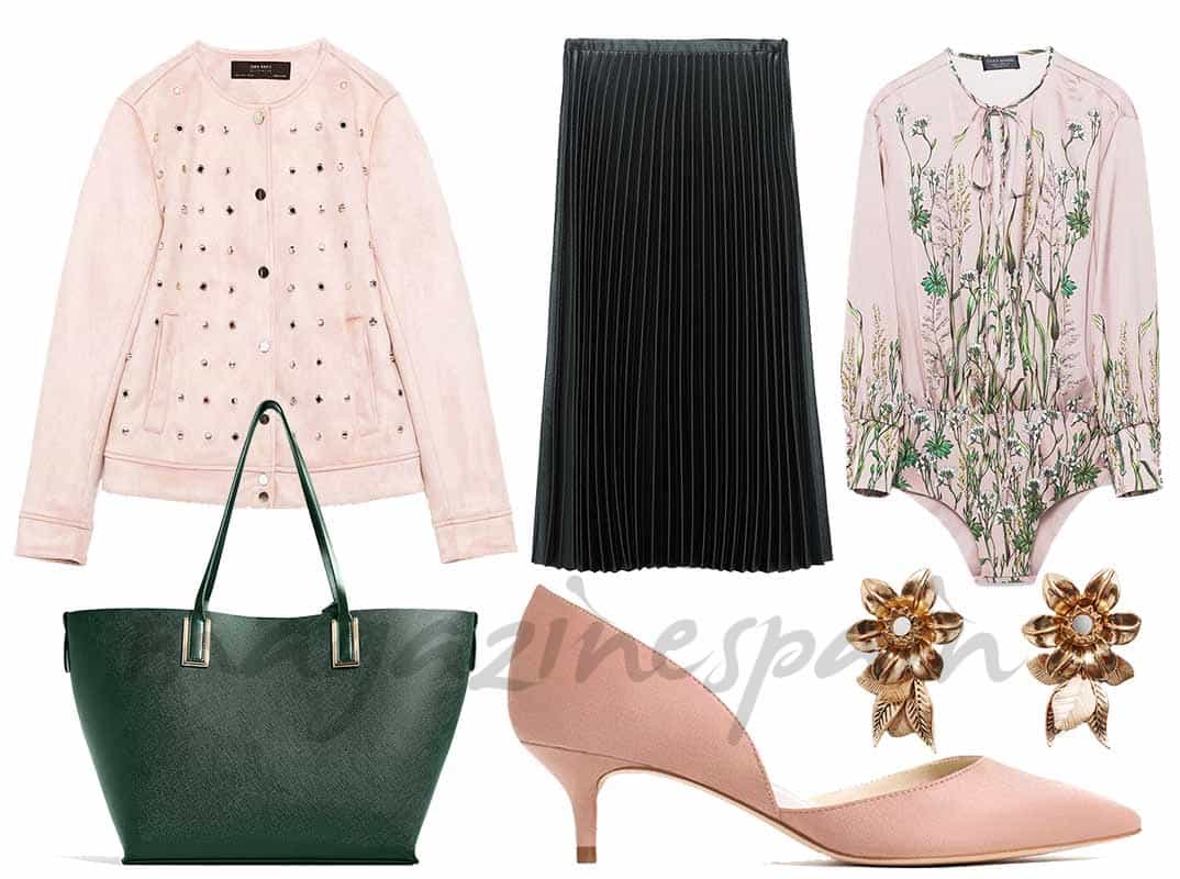 Si por el contrario queréis disfrutar de una agradable tarde con amigas con un conjunto algo más arreglado, aquí tenéis una opción diferente y muy versátil, ya que cada una de las prendas por separado os darán mucho juego a la hora de combinar con otras, como por ejemplo la falta con un jersey en crudo o el body con unos pantalones rosas o verdes.