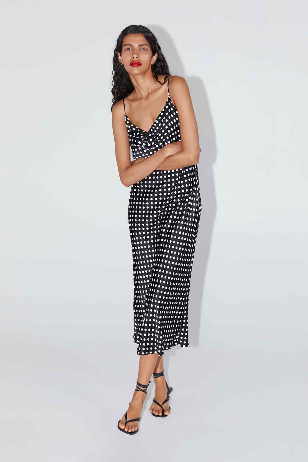 En pleno verano han adoptado sus tonalidades más vivas, perfectos para resaltar el moreno que has cogido en tus vacaciones o que cogerás en los próximos días. El morado, el amarillo, el rojo o el verde son solo algunos de los colores más repetidos sobre los que se han estampado estos lunares tan distintivos. Aunque incluso las noches más especiales de esta temporada precisan sin duda de la versión en negro con puntitos blancos, sin complicaciones. Puede que sea la interpretación más banal sí, aunque sin ninguna duda son la más elegante. Para salir de esta combinación tan ‘rutinaria’ de colores, siempre puedes añadir un accesorio especial a todo color ¿ya lo tienes?