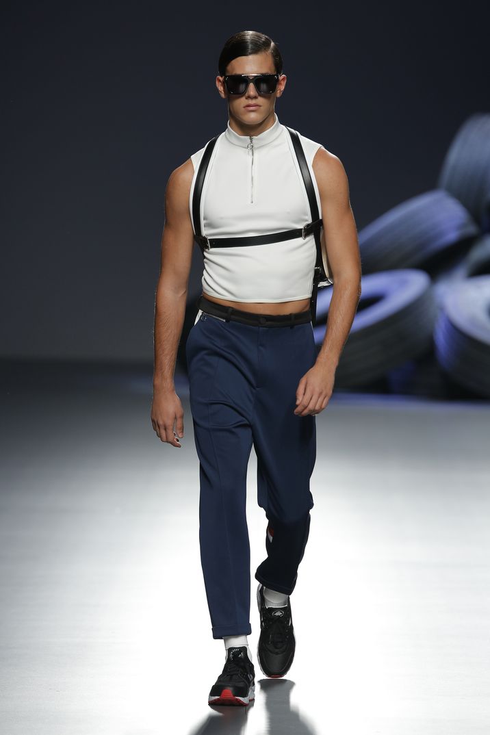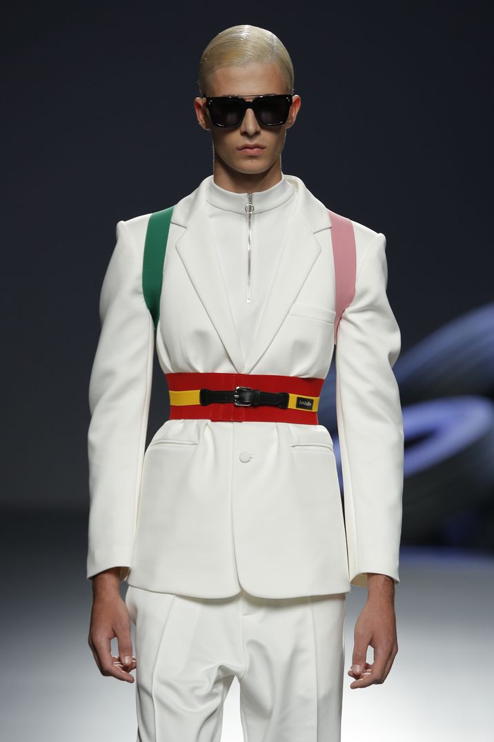 Las piezas más destacadas han sido los smokings-vestidos (como si batas de cola se tratasen) que lució Alba Galocha y después Bimba Bosé, cerrando el show. También han sido muy interesantes los trajes chaqueta masculinos con suspensores deportivos por fuera y un minivestido blanco con volantes desmontables…