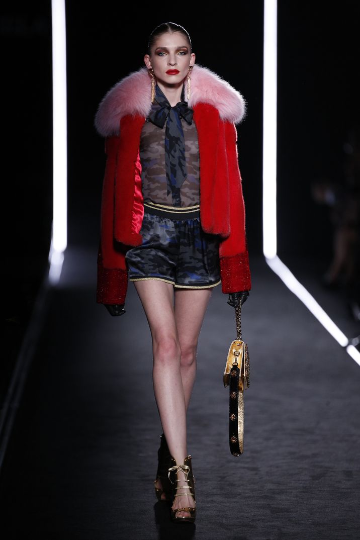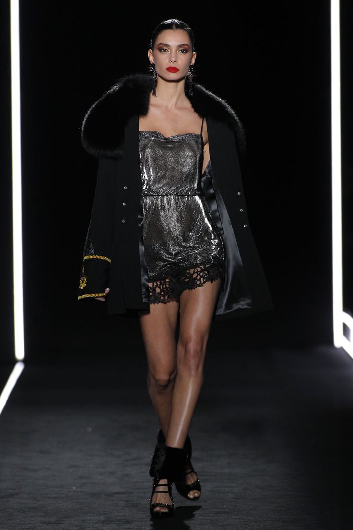 Con look totalmente negro, incluidas las gafas, presentó una colección, en la que no estuvo nuestra Reina. La colección gustó mucho a los presentes, comenzó