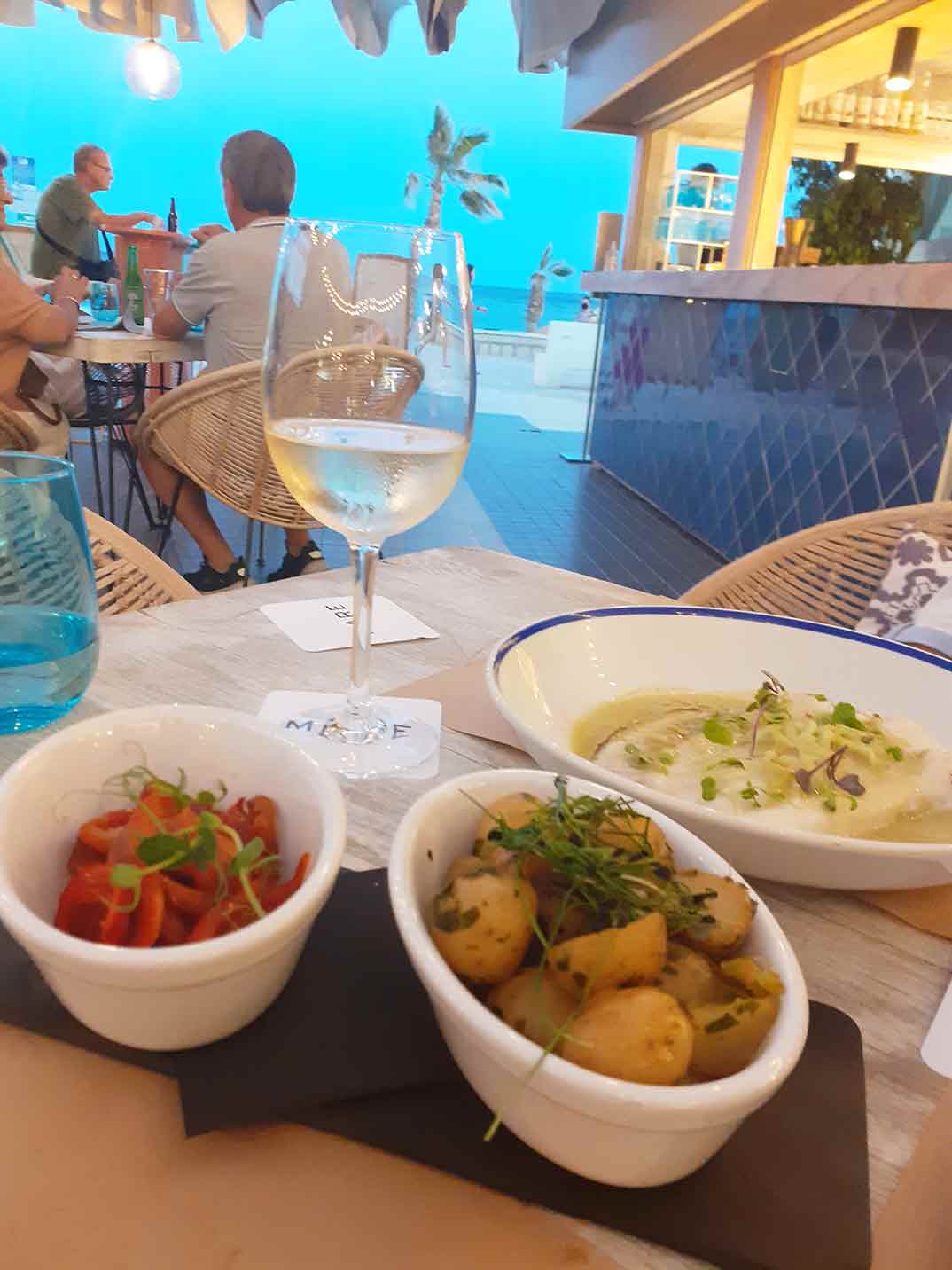 En este ambiente tan veraniego y mediterráneo se encuentra Mare, un restaurante tranquilo con una oferta amplia, ligera y centrada en el productos de proximidad con especial protagonismo a los pescados y mariscos procedentes de las lonjas de Denia, Calpe y Jávea, principalmente.