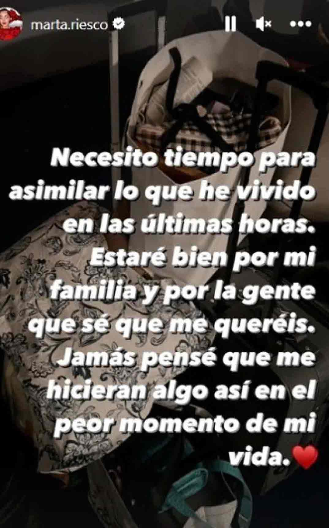 En la fotografía que acompaña, de fondo, sus palabras se puede apreciar cómo Marta ha hecho ya las maletas y se dispone a dejar el hogar que ha compartido este tiempo con Antonio David, en Málaga, y poner rumbo a Madrid, donde tiene fijada su residencia.