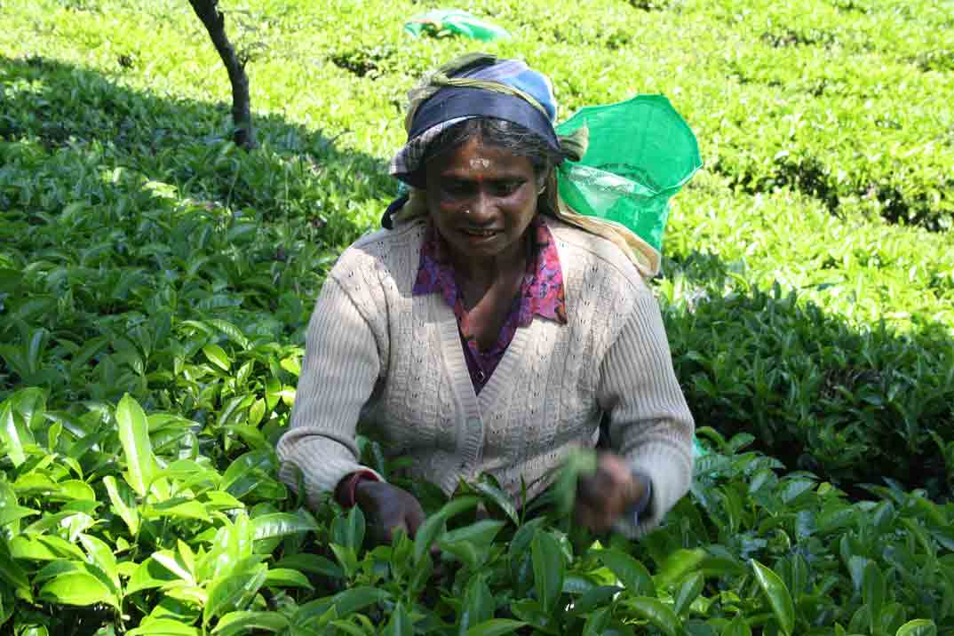 El arbusto del té de Ceylan se siembra con esquejes que comienzan a dar producción a los dos años. Cada 5-6 años se poda totalmente y vuelve a producir en seis meses. El mismo arbusto puede vivir 40-50 años. Son las mujeres las que desde muy jóvenes se encargan de recoger los brotes del té manualmente, portando unos cestos en su cabeza.