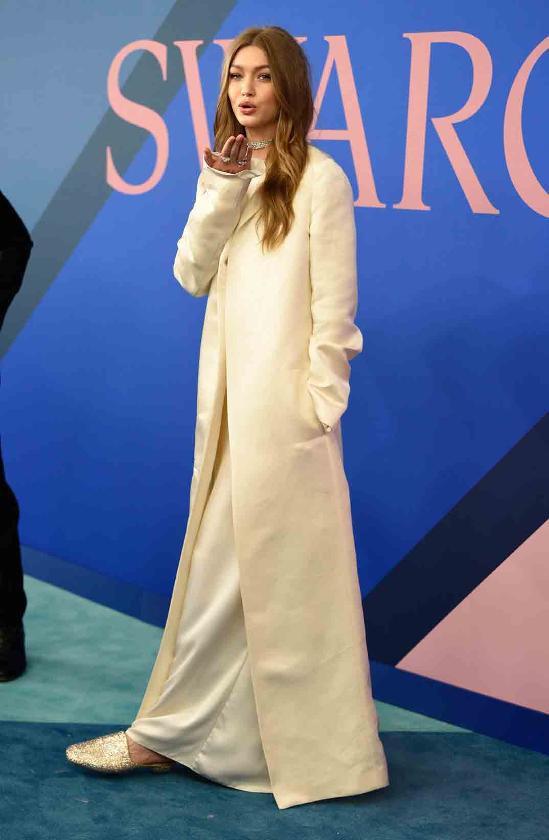 Bella Hadid fue una de las invitadas más sofisticadas de la noche con un blazer en rosa fucsia a modo de vestido de la firma Off White. Su hermana, Gigi Hadid eligió para la ocasión un vestido y abrigo de The Row.