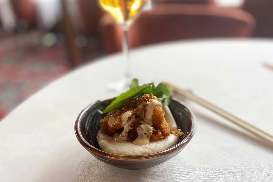 De su apartado de influencias Ibero-chinas, espectacular el «Brioche de pato marinado con 5 especias chinas y mayonesa picante» y el «Torrezno cantonés marinado en especias».