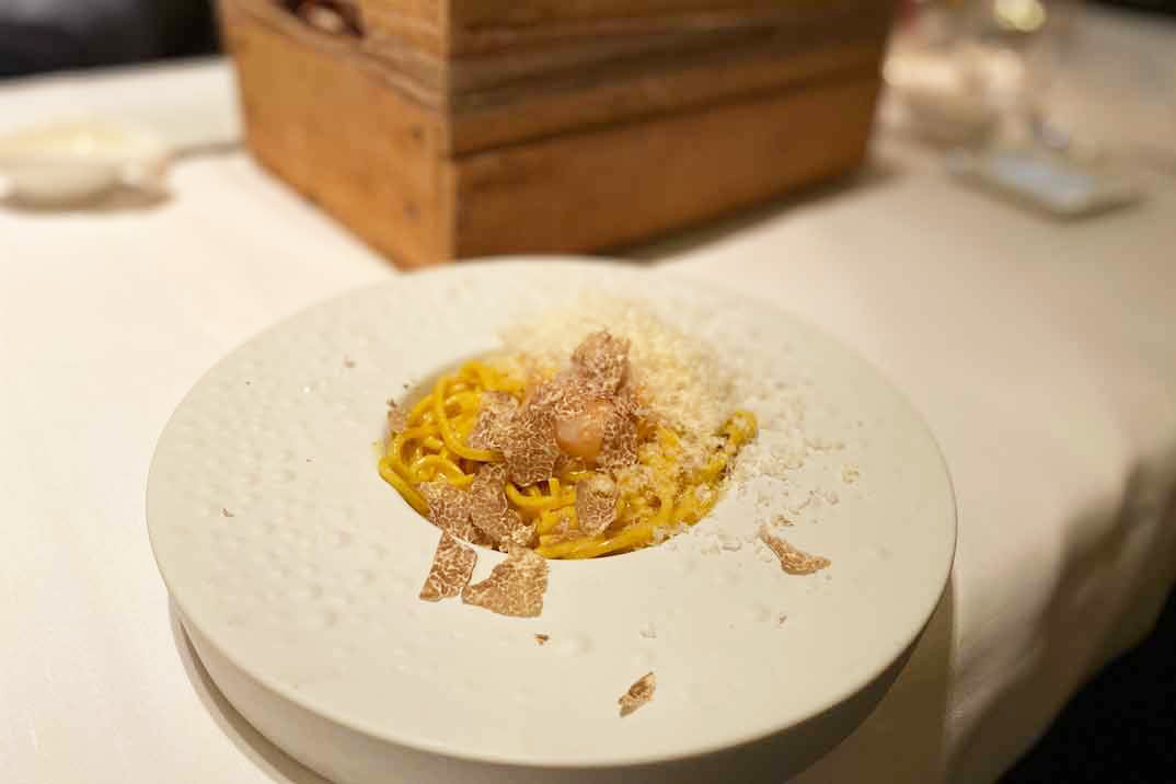 En su carta encontrarás propuestas con sabores auténticos y tradicionales y otras provocadoras, creativas e innovadoras. Una cocina auténtica del norte de Italia que respeta escrupulosamente la tradición pero con toques vanguardistas muy novedosos. Su menú degustación reinterpreta platos típicos a través de formas, colores y texturas innovadoras, pero respetando, siempre, su esencia como los «Tallarines hechos a mano, trufa fresca, yema de huevo y queso Cacio Nerone» o el «Medio pichón en salsa de Amarone y frutas del bosque, crema de chirivía y espinacas baby, pasas y piñones«.