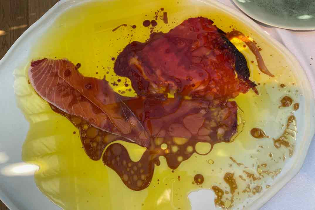 Tienen un apartado que hace mención especial al atún: Oda al Atún Rojo. El chuletón de Atún Rojo de Almadraba, es un corte único y excepcional que aquí lo presentan en formato de carpaccio y que aúna en un solo plato un viaje degustativo. Nos lleva desde la zona más seca y de color más intenso como es el descargamento, pasando por la parte media del tarantelo, hasta finalizar nuestro viaje en la zona de mayor infiltración, la ventresca.