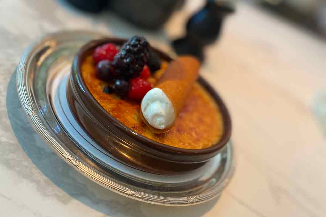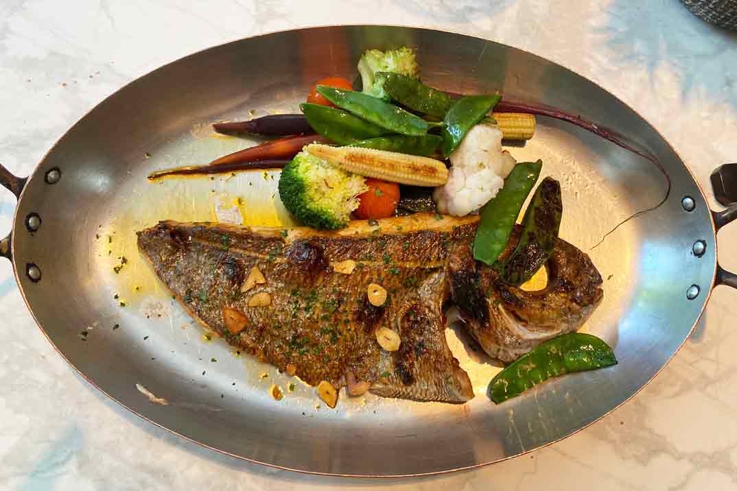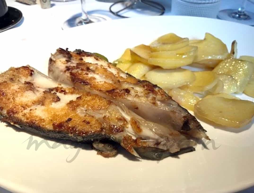Como plato principal nos decantamos por por un pescado de su lonja: «Besugo a la bilbaina«. Si eres un amante del dulce, no te puedes perder su propuesta de lo más casera: una vitrina repleta de los postres más deliciosos, de la mano del Chef Patissier Emanuel Alves.