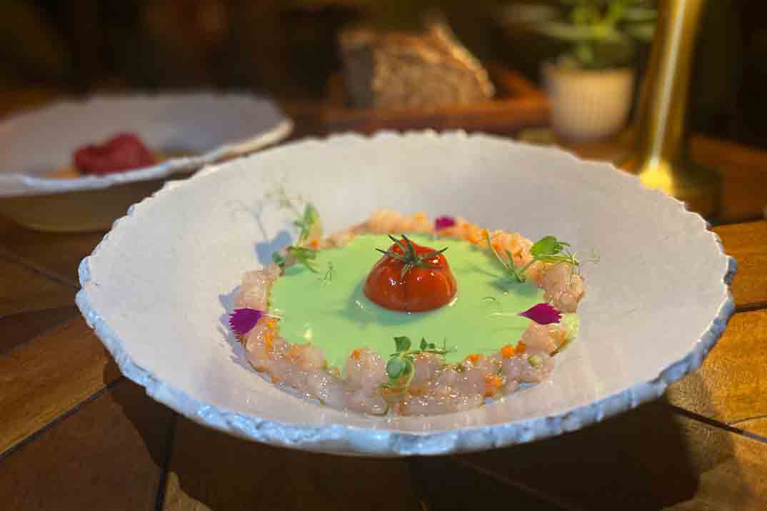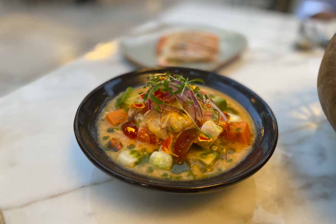 Comenzamos nuestra experiencia gastro con una “Gamba blanca al josper con sichimi togarashi and coupage olive oil”. La propuesta de Gastón Acurio en el Ritz deslumbra con creaciones como el “ceviche de carabinero y la lubina con leche de tigre de rocoto”, un auténtico espectáculo de sabor que refleja la maestría del chef y la frescura de cada ingrediente.