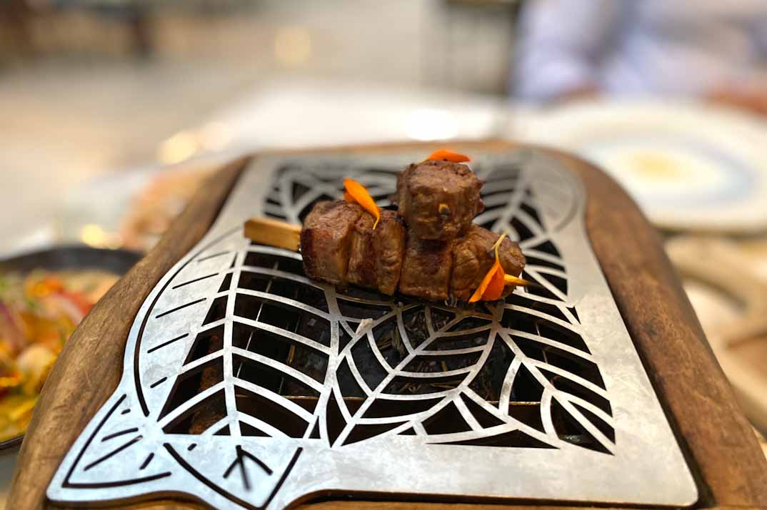 Las brochetas a la parrilla robata se elevan a la excelencia con la brocheta de wagyu eye al josper, sazonada con sumac y un toque de sal de vainilla que realza cada bocado. El rodaballo, acompañado de salsa mignonnette y una delicada emulsión de piquillos, completa una experiencia gastronómica que combina técnica, sabor y presentación impecable.