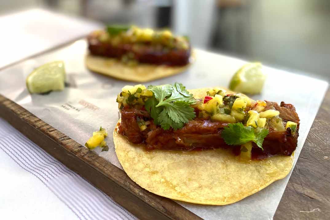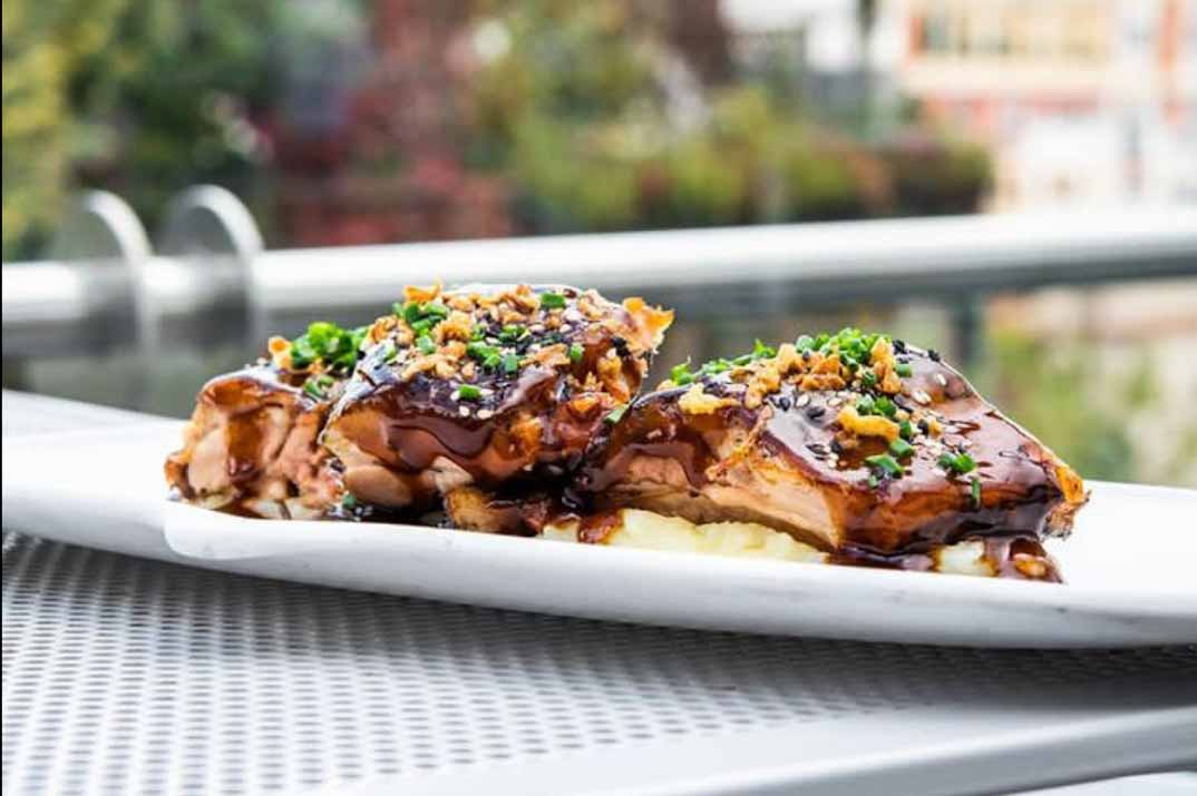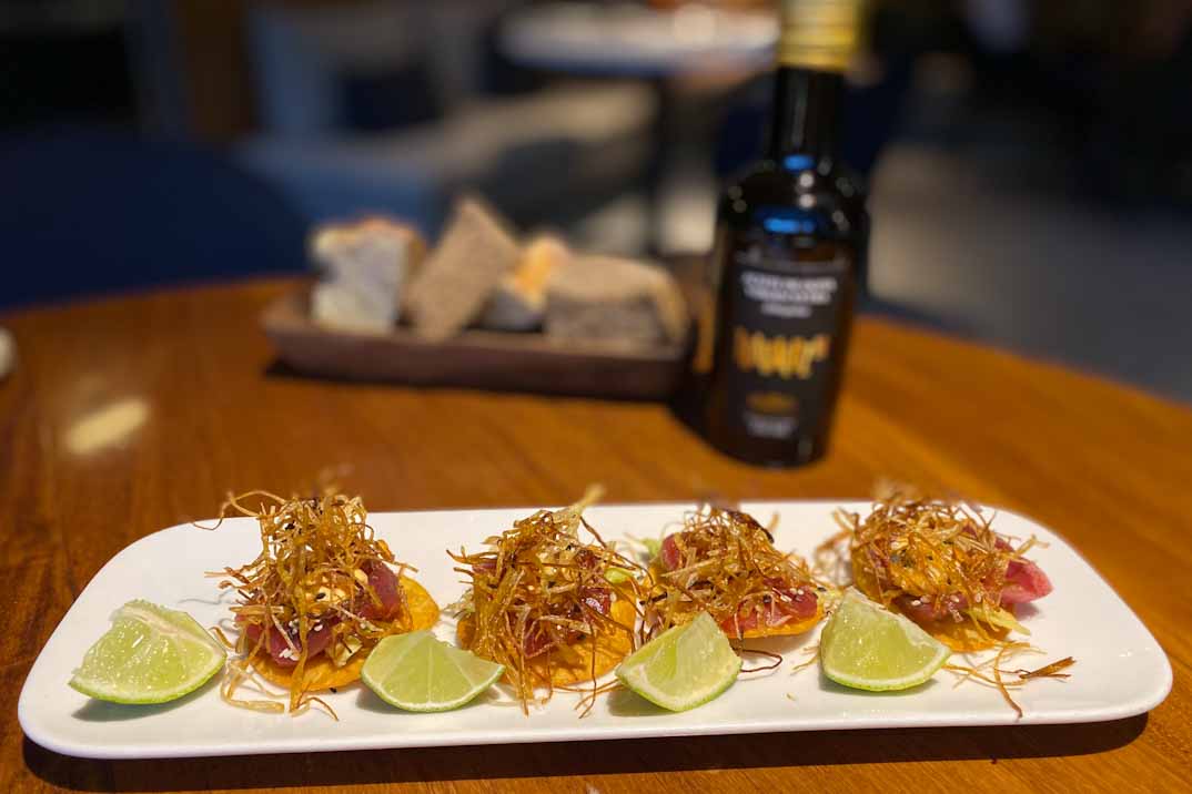 El producto de calidad es el auténtico protagonista de su cocina. La experiencia gastro puede comenzar con un picoteo protagonizado por unas «Gambas en tempura con salsa spicy» y unos «Tacos de costilla de cerdo, salsa BBQ y pico de gallo«.