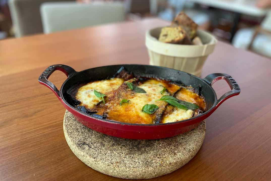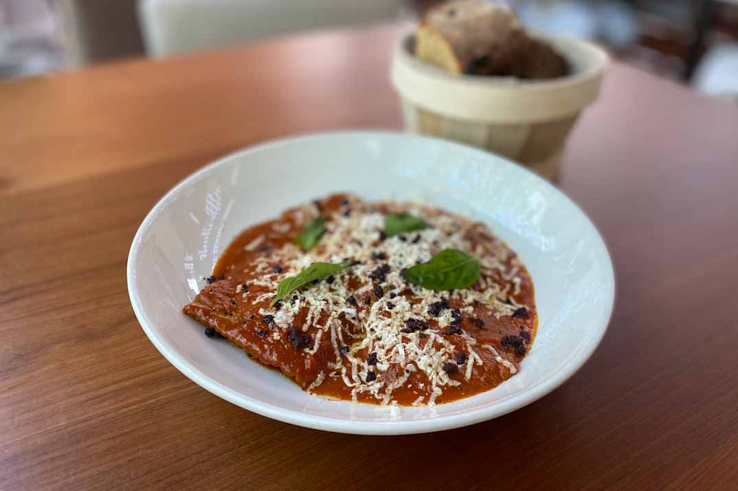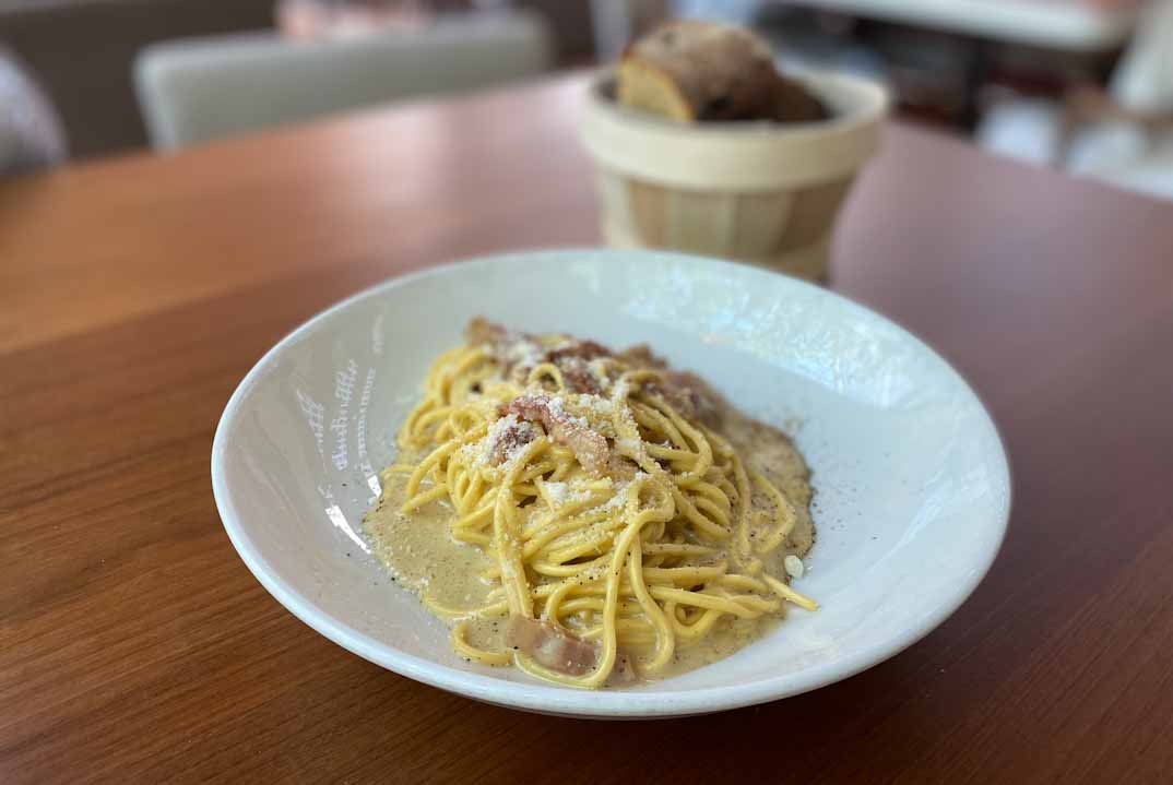 La propuesta gastronómica de Bosco de Lobos rinde homenaje a la tradición italiana con toques actuales y frescos. Entre los entrantes, la Parmigiana di melanzane es un acierto absoluto: capas de berenjena, tomate y queso que condensan todo el sabor del Mediterráneo en un plato reconfortante. Entre las pastas, los Raviolones rellenos de caponata siciliana con salsa de pomodoro y ricotta salata conquistan por su delicadeza, mientras que los Spaghetti alla carbonara clásicademuestran que la sencillez, bien ejecutada, puede ser sublime. A todo ello se suman otras propuestas de antipasti, risottos, pizzas al horno de leña y postres que ponen el broche dulce a la experiencia, como la tarta de pistacho, limón y merengue o el lingote de chocolate con dulce de leche.