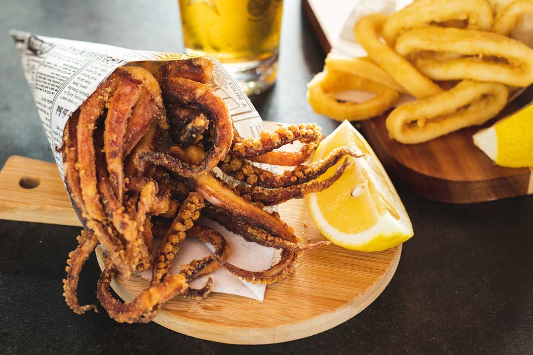 Por su parte, los pescados y mariscos siguen ocupando una parte importante de la oferta del mercado. Esto es posible gracias a puestos como el de Morris, especializado en mariscos frescos y de calidad traídos diariamente de las costas gallegas. Por su parte, El Señor Martín ha conseguido hacerse un nombre dentro del mercado gracias a sus cucuruchos de pescaíto frito (boquerones, calamares, cazón). Y algo parecido ocurre con Daniel Sorlut y sus ostras “claires”, que son ya toda una institución en la capital. Además, La Casa del Bacalao pone a disposición de los usuarios una amplia variedad de tapas elaboradas con ahumados, salazones y conservas de pescado. Por último, Crab Crab Crab se convierte en un monográfico en torno al cangrejo, producto que combinan con surimi, wakame, genjibre o huevas de lumpo, entre otros alimentos.