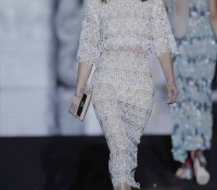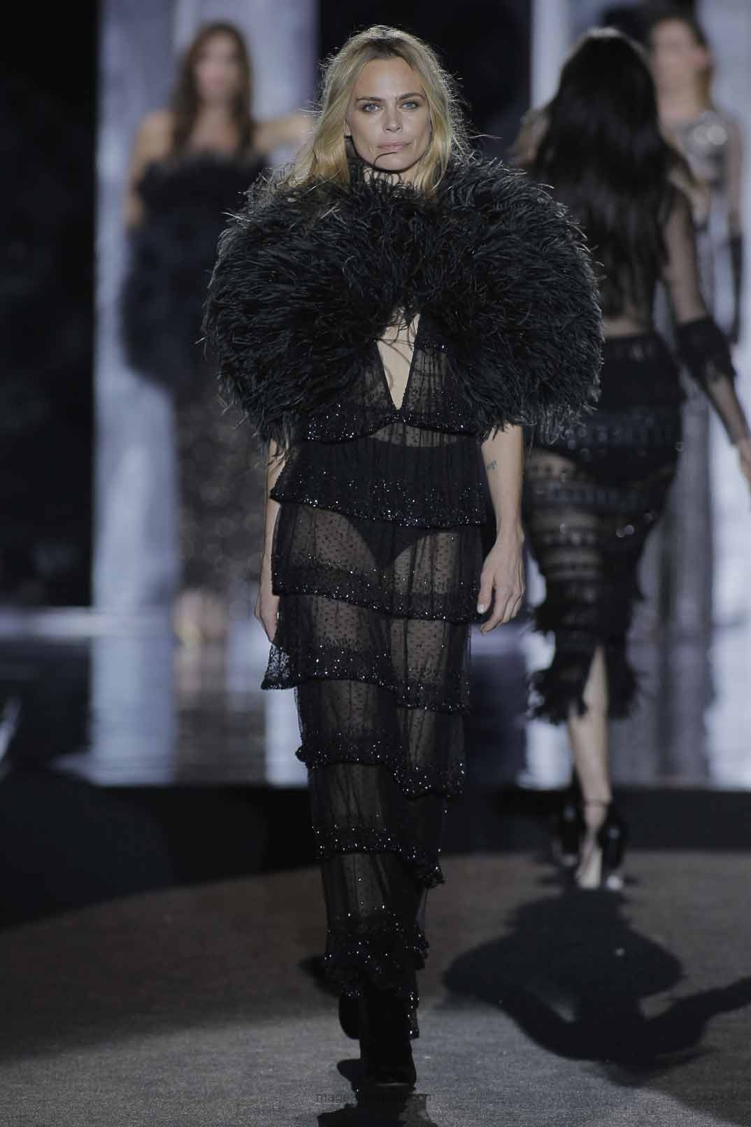 Sobre la pasarela madrileña hemos podido ver a diez de las top models más importantes de la moda española luciendo su propuesta nocturna repleta de destellos con perfectos acabados de las prendas y exquisitos bordados sobre tul, encaje y guipur. Las plumas cobran especial protagonismo en algunos de los ‘looks’ más sofisticados de la línea y la exquisitez de las formas se hace patente en todas y cada una de las piezas, bañadas con un cierto halo de los años 20.